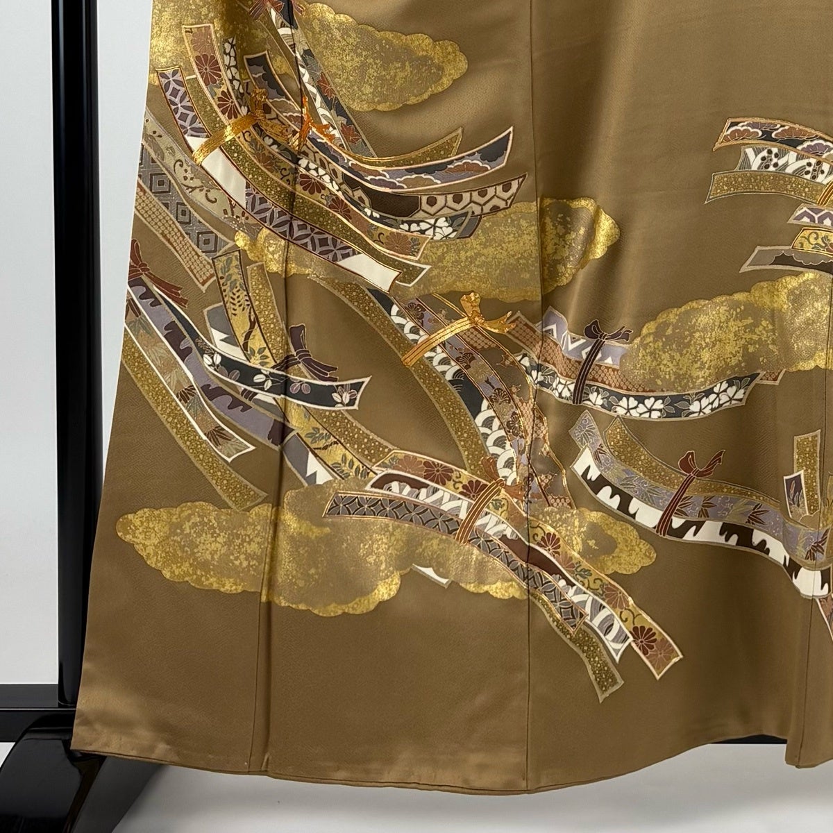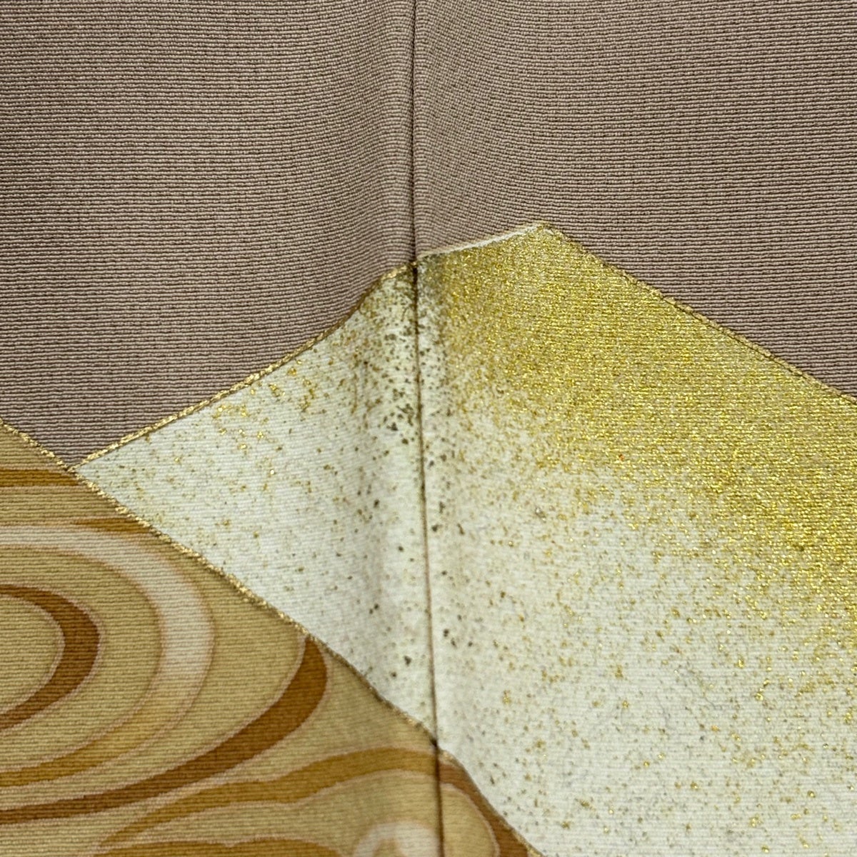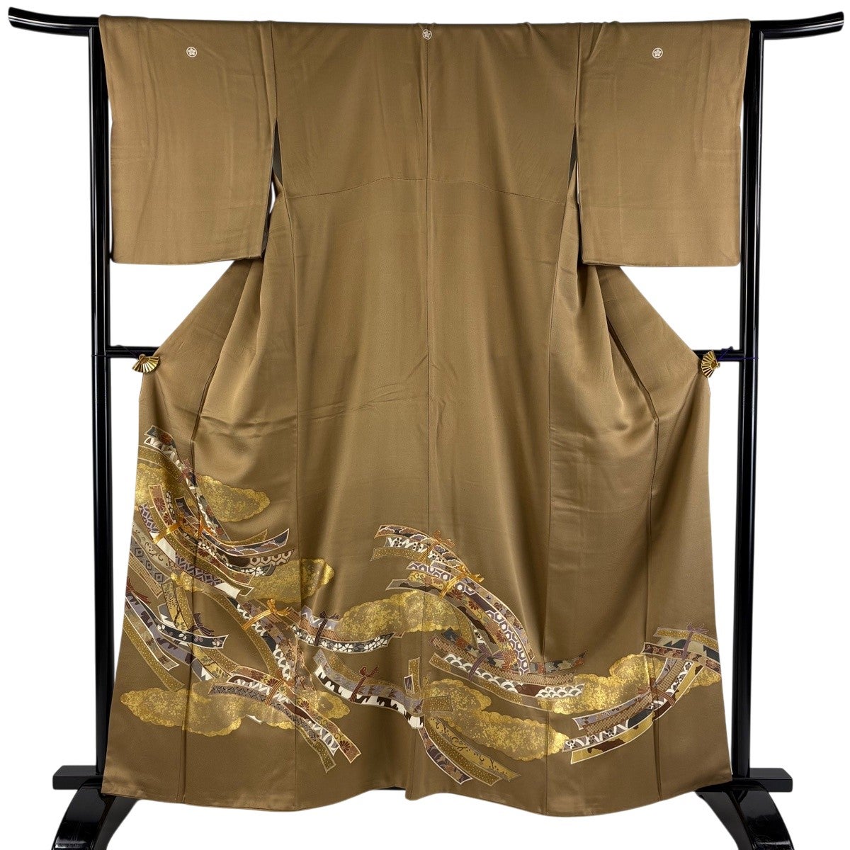 色留袖 身丈161cm 裄丈65.5cm M 袷 束ね熨斗 雲文 金糸 金彩 薄茶色 正絹 秀品 三つ紋