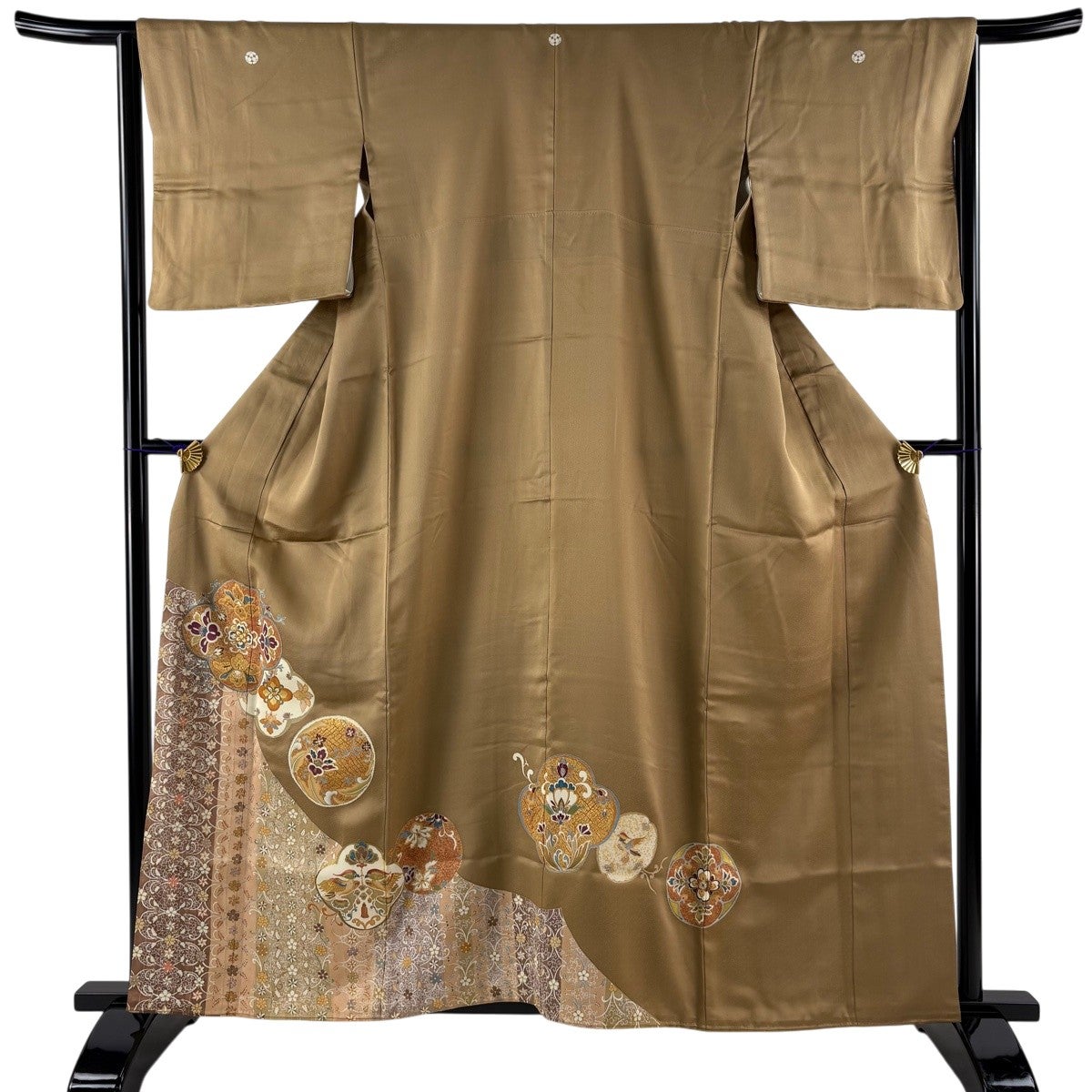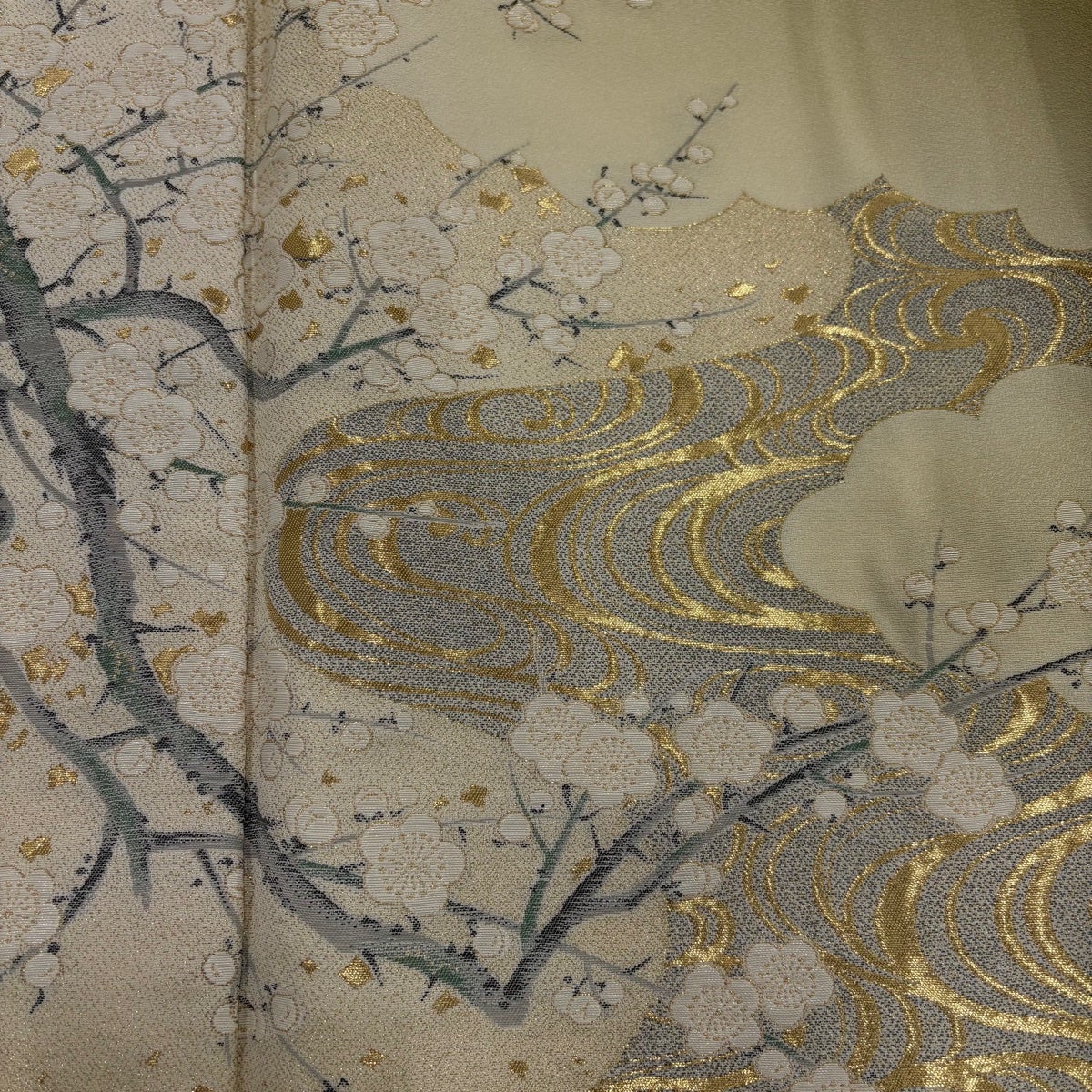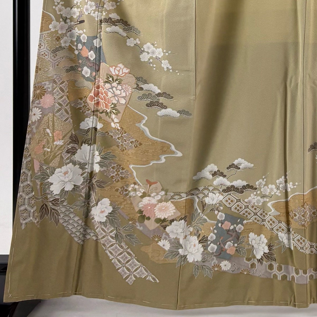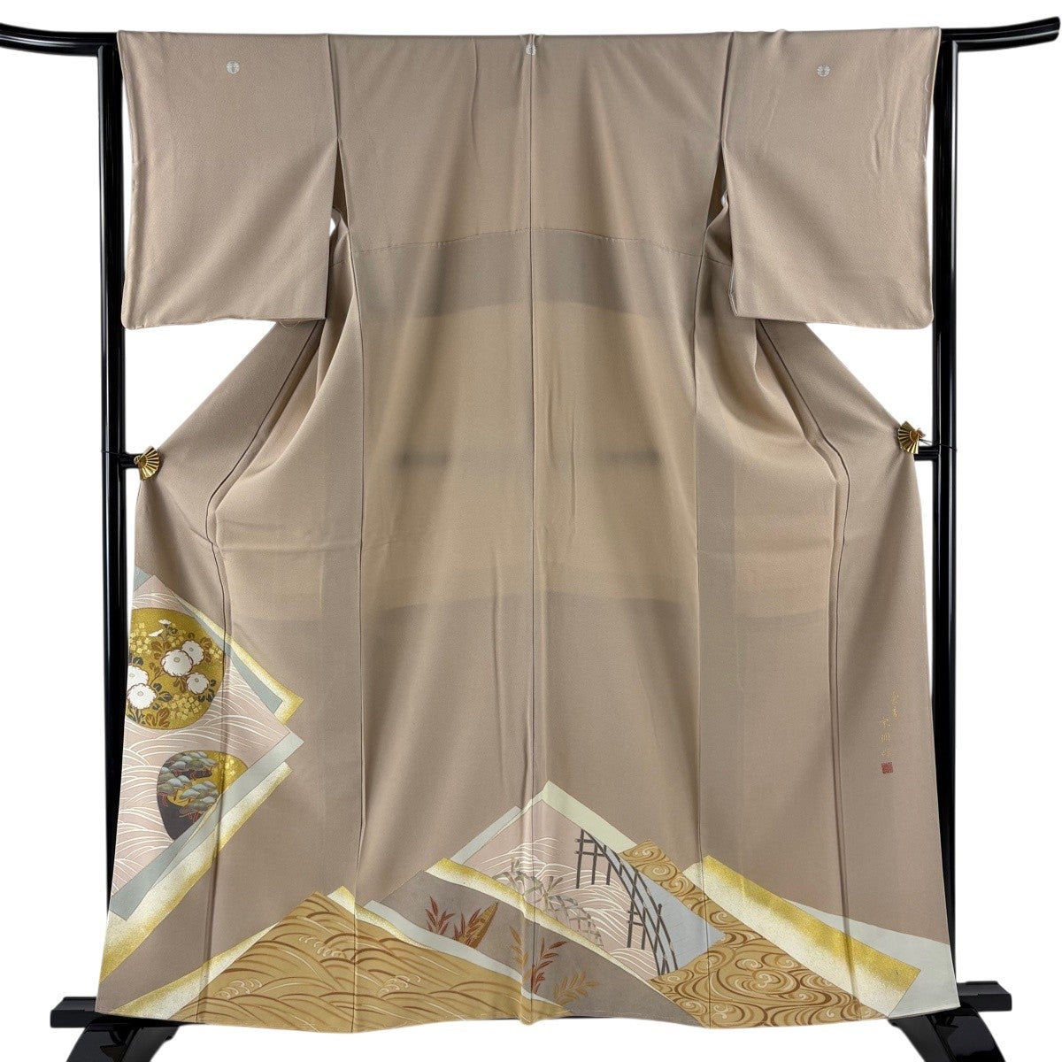 【美品】 色留袖 身丈155.5cm 裄丈63cm S 袷 菊 松竹梅 金糸 金彩 ベージュ 正絹 秀品