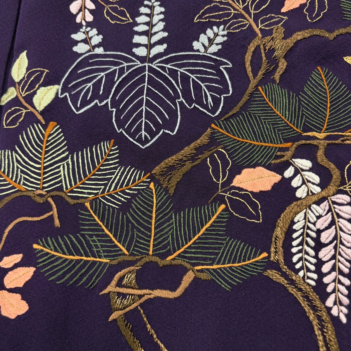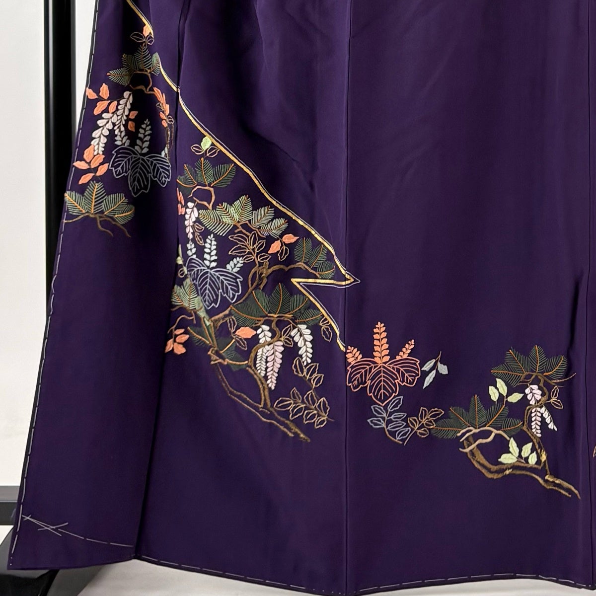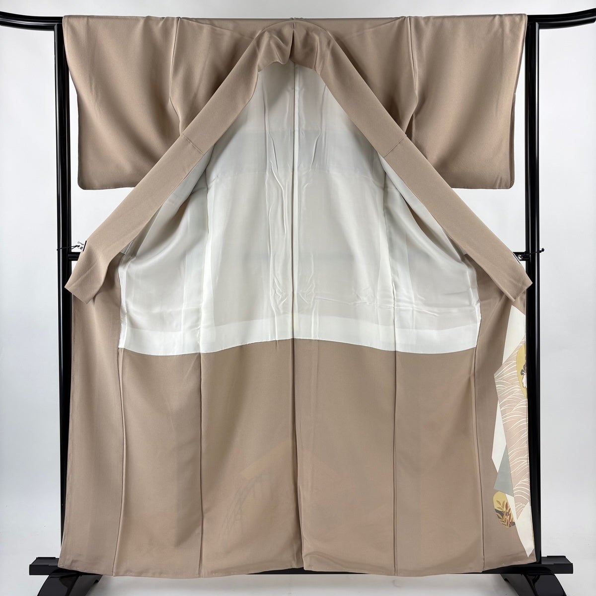 色留袖 身丈159cm 裄丈64.5cm M 袷 松 波頭 蘇州刺繍 ベージュ 正絹 秀品 三つ紋