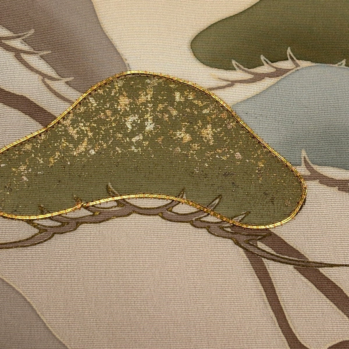 色留袖 身丈163cm 裄丈66cm M 袷 落款あり 華文 花唐草 金彩 金糸 灰緑 正絹 秀品 一つ紋