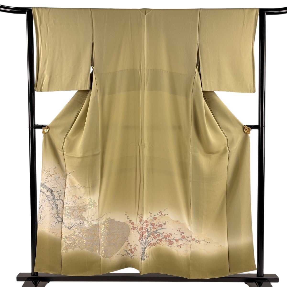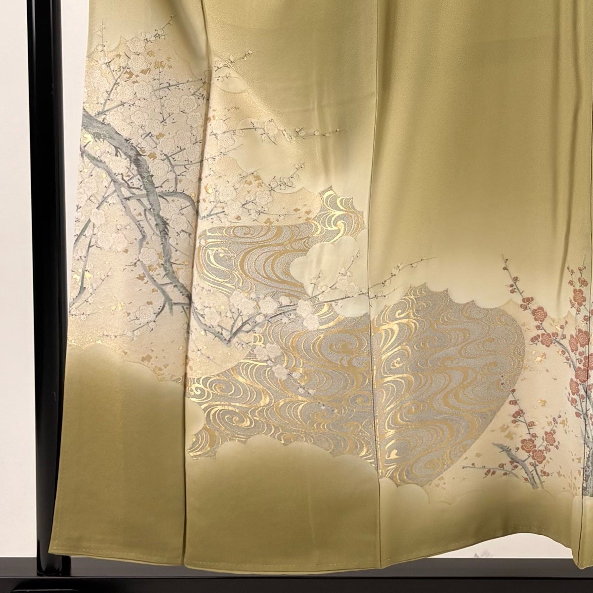 50%OFF 色留袖 身丈155cm 裄丈65cm M 袷 樹木 枝梅 灰緑 正絹 秀品 一つ紋 K50