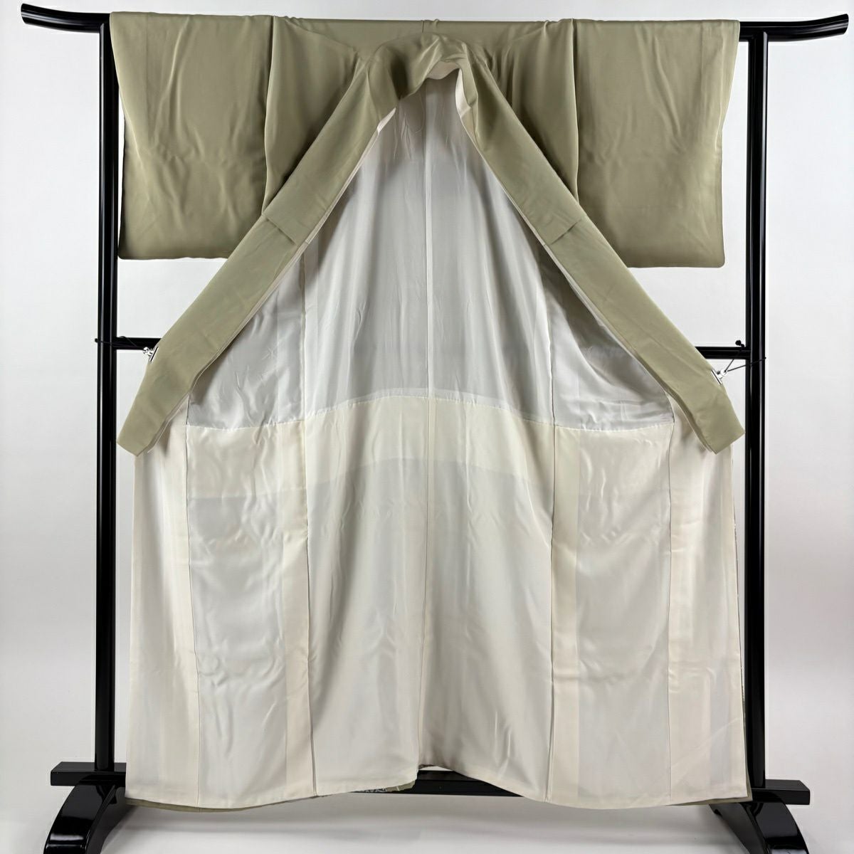 【美品】 色留袖 身丈151.5cm 裄丈66cm M 袷 鶴 流水 金彩 刺繍 灰緑 正絹 秀品 一つ紋