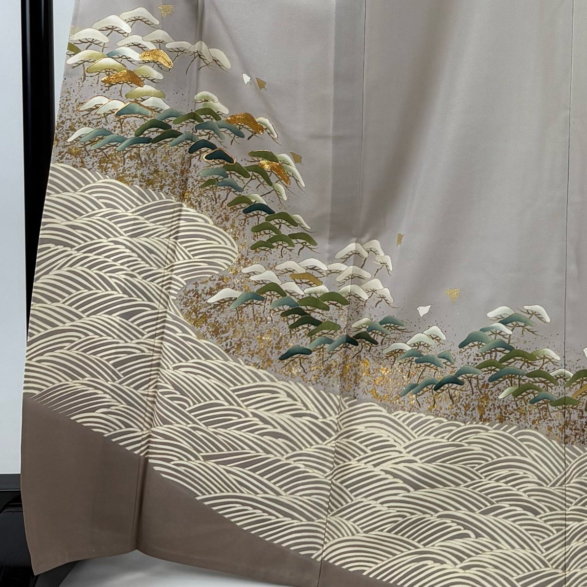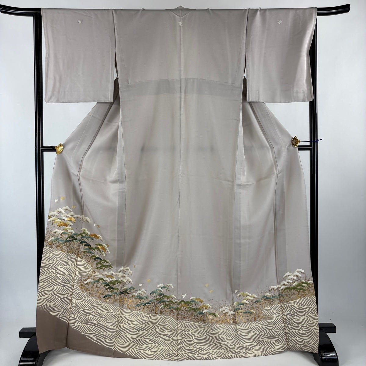 50%OFF 色留袖 身丈157cm 裄丈63.5cm S 袷 お仕覆 波 金糸 金彩 灰色 正絹 秀品 一つ紋 K50