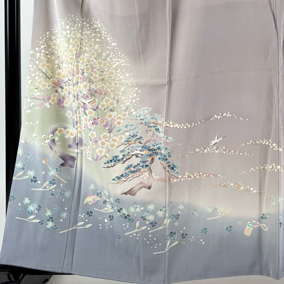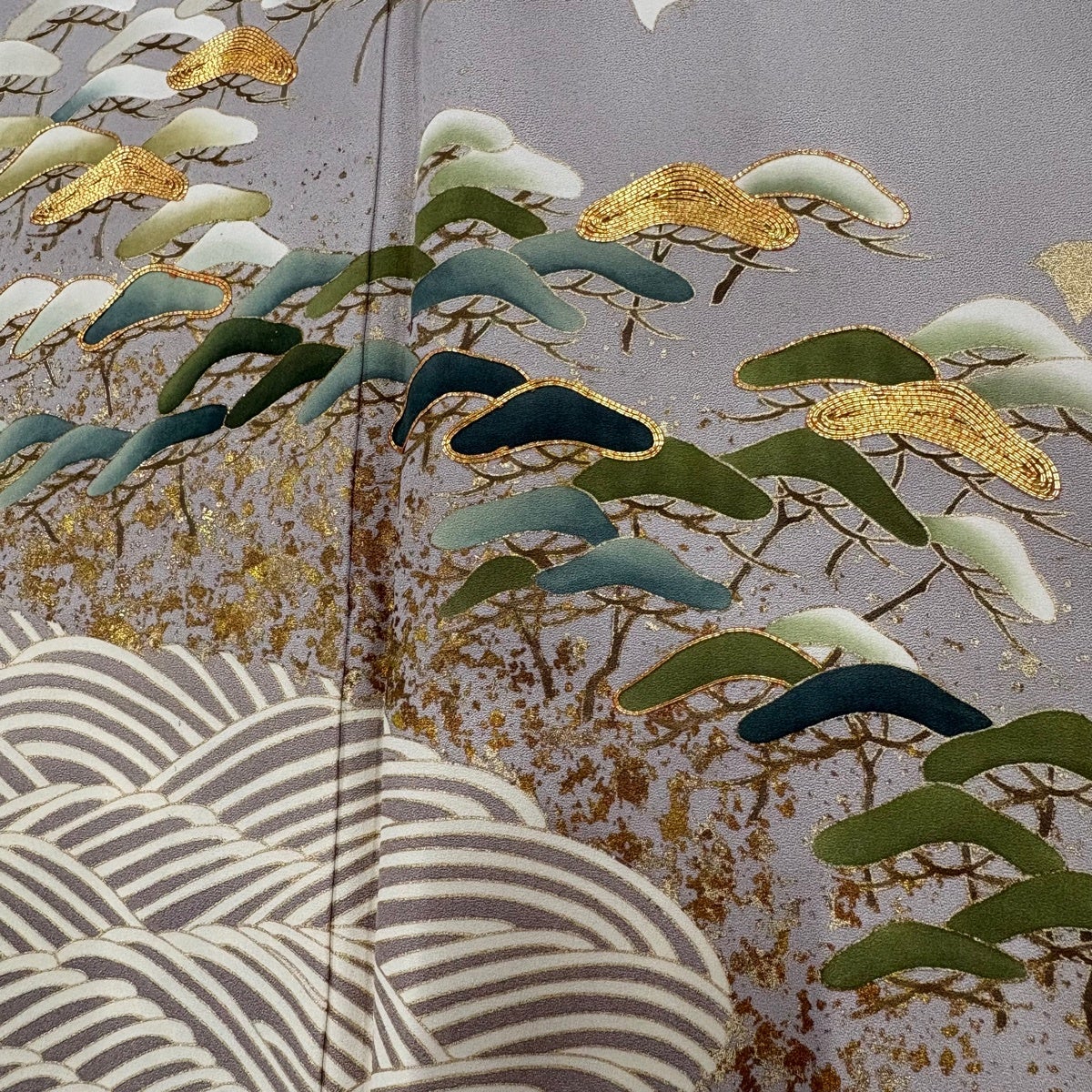 50%OFF 色留袖 身丈156cm 裄丈62.5cm S 袷 落款あり 松竹梅 橋 灰紫 正絹 秀品 一つ紋 K50