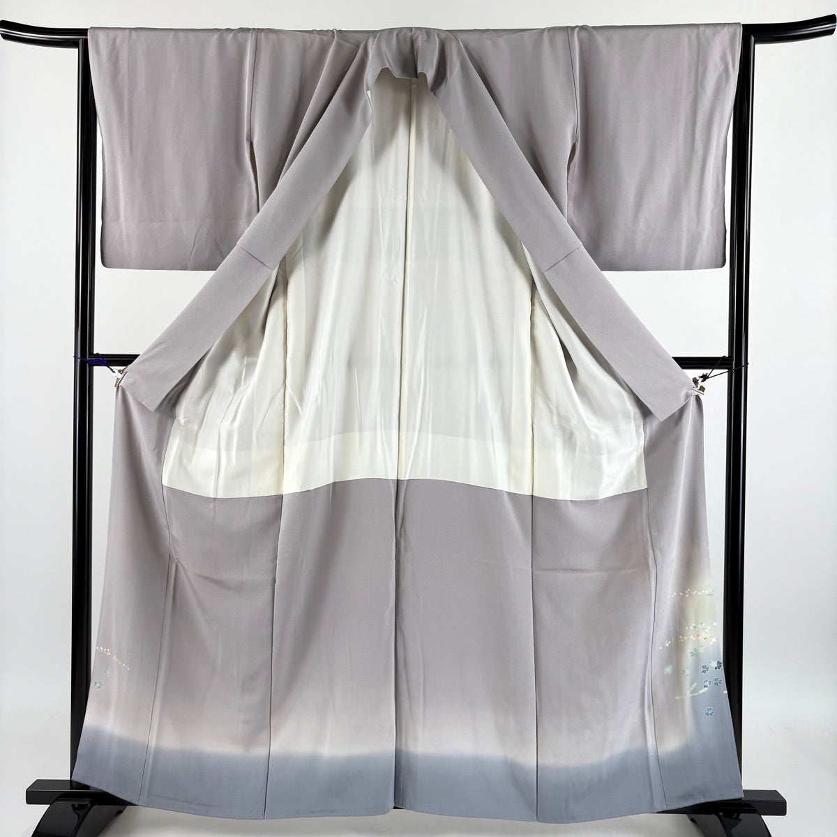 70%OFF 色留袖 身丈158.5cm 裄丈62cm S 袷 ヱ霞 秋草 金糸 金彩 灰色 正絹 秀品 一つ紋 K70