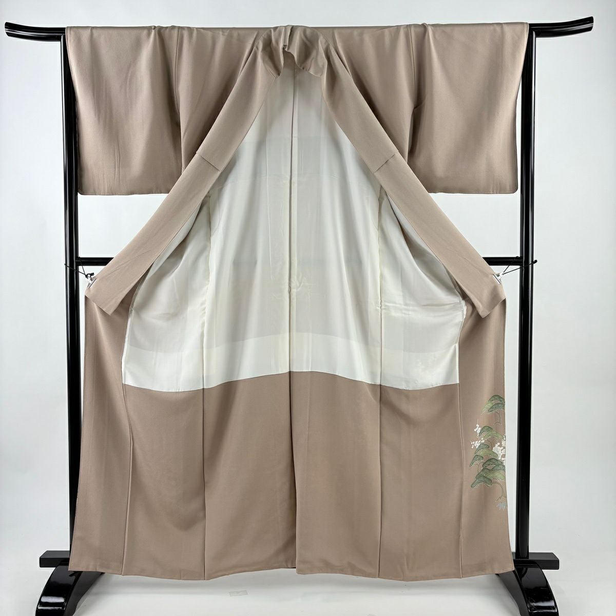 50%OFF 色留袖 身丈160.5cm 裄丈63cm S 袷 草花 松梅 金彩 ぼかし 薄茶色 正絹 秀品 K50
