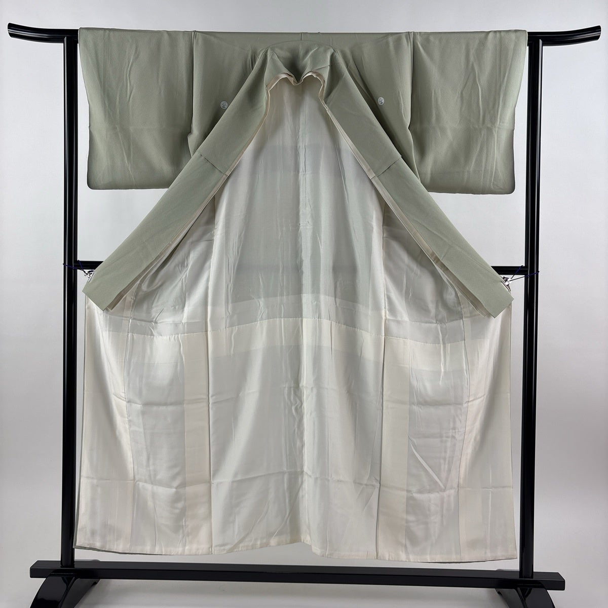 色留袖 身丈154.5cm 裄丈66cm M 袷 草花 幾何学模様 金彩 ぼかし 灰緑 正絹 秀品 一つ紋
