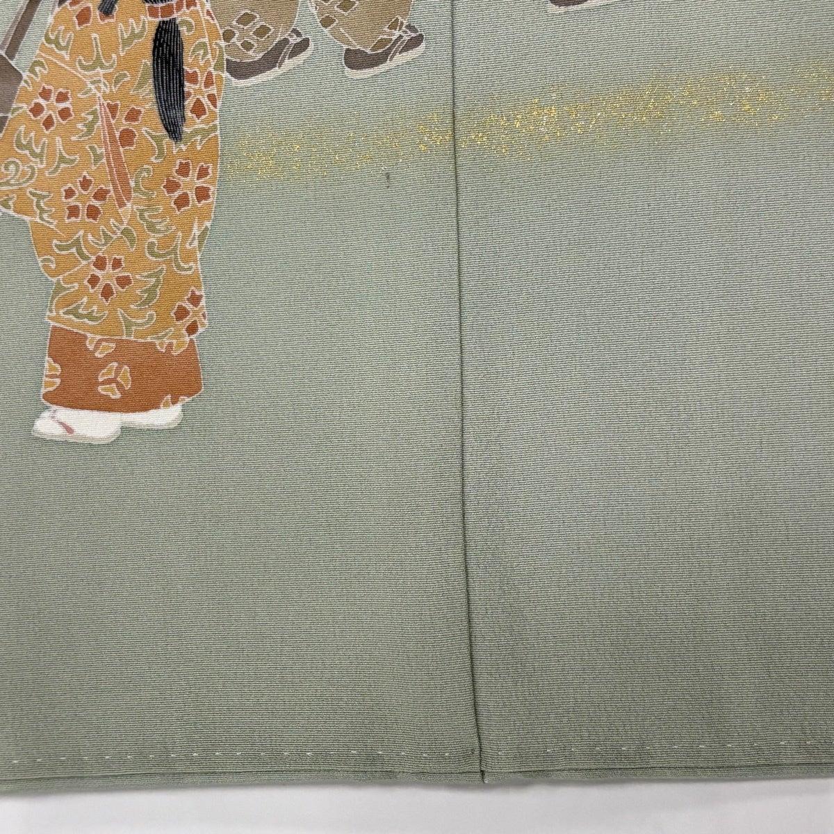 色留袖 身丈153cm 裄丈63cm S 袷 関口遼一 落款あり 童 霞 金銀彩 灰緑 正絹 秀品 五つ紋