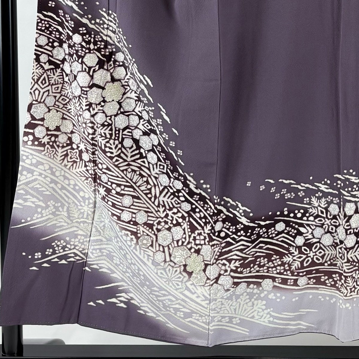 他の画像を見る 70%OFF 色留袖 身丈152cm 裄丈62cm S 袷 ふき綿仕立て 落款あり 建物 樹木 ぼかし 灰紫 正絹 秀品 一つ紋 K70 当店通常価格 ¥ 6,800 ¥ 2,040 税込
