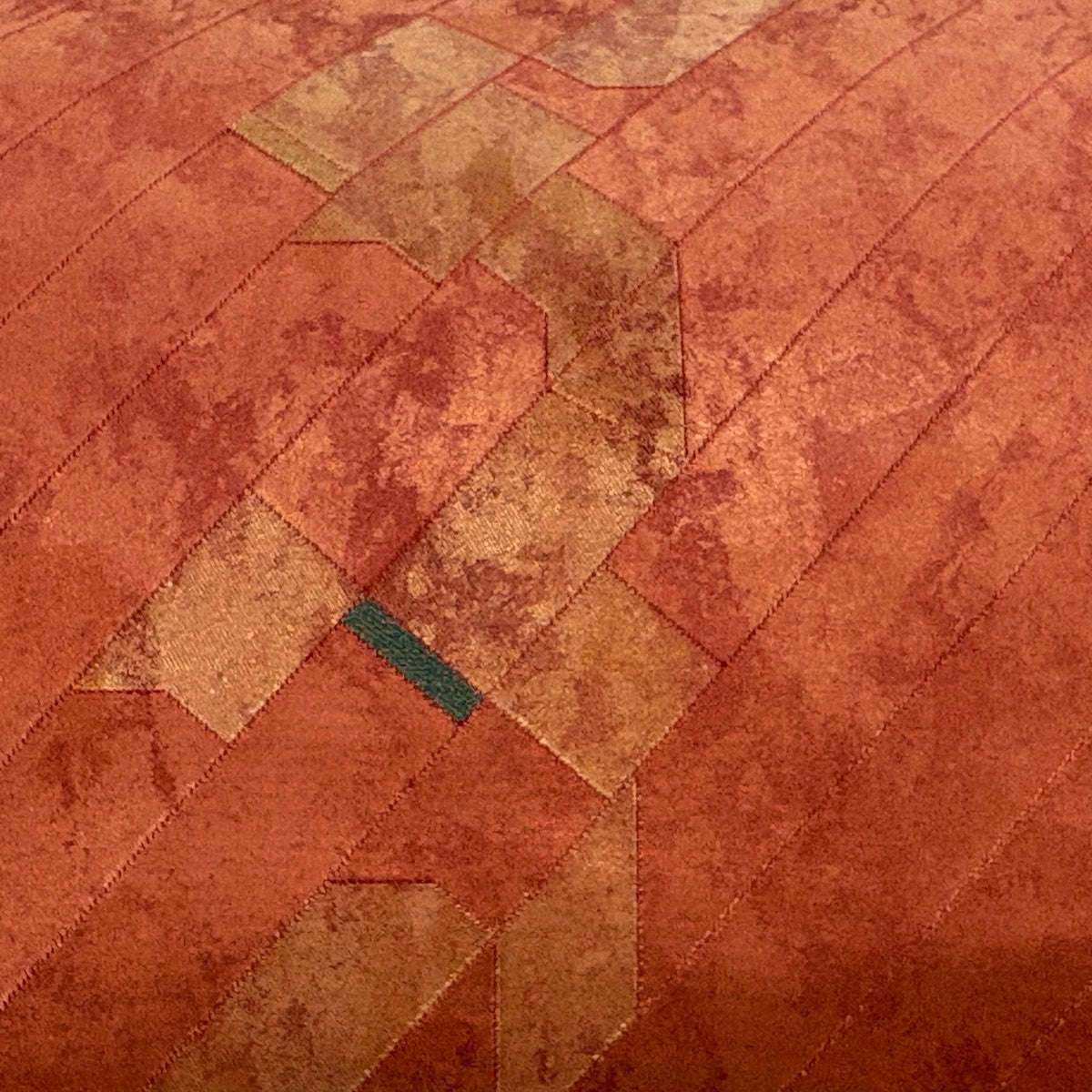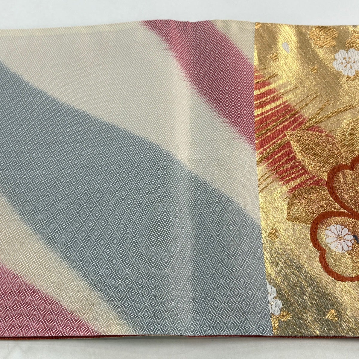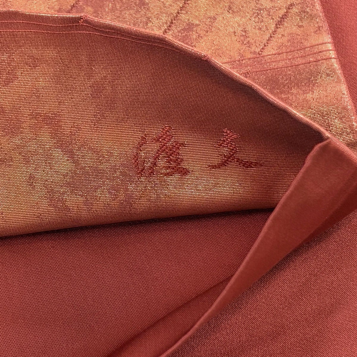 70%OFF 【美品】 袋帯 秀品 夏帯 幾何学 箔 茜色 お太鼓柄 正絹 K70