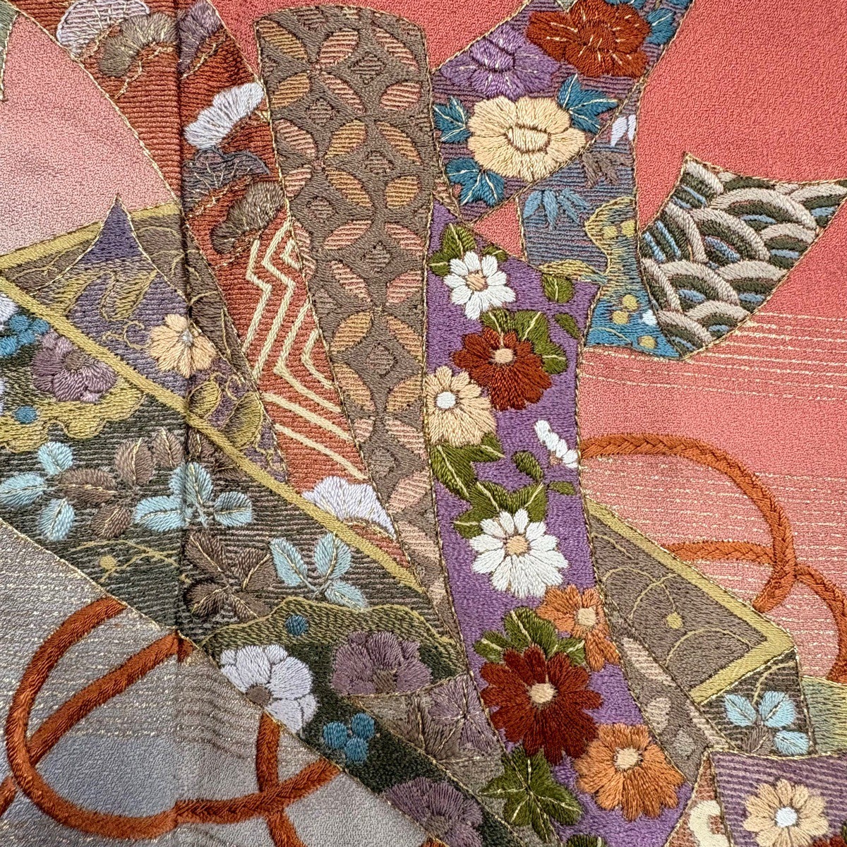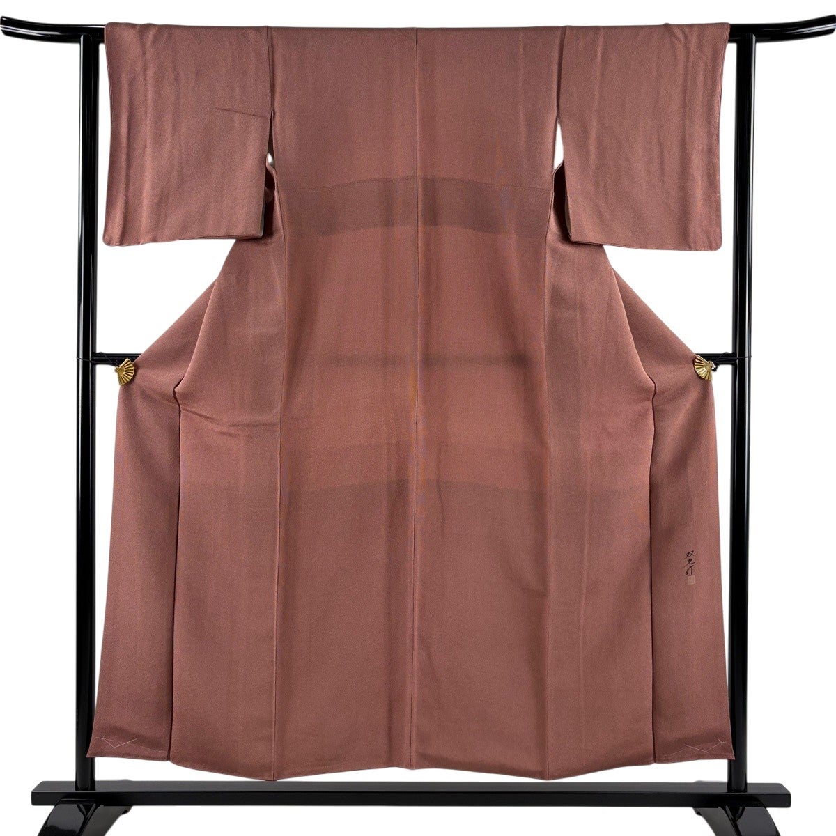 付下げ 身丈158cm 裄丈63cm S 袷 文箱 短冊 金糸 刺繍 茜色 正絹 秀品