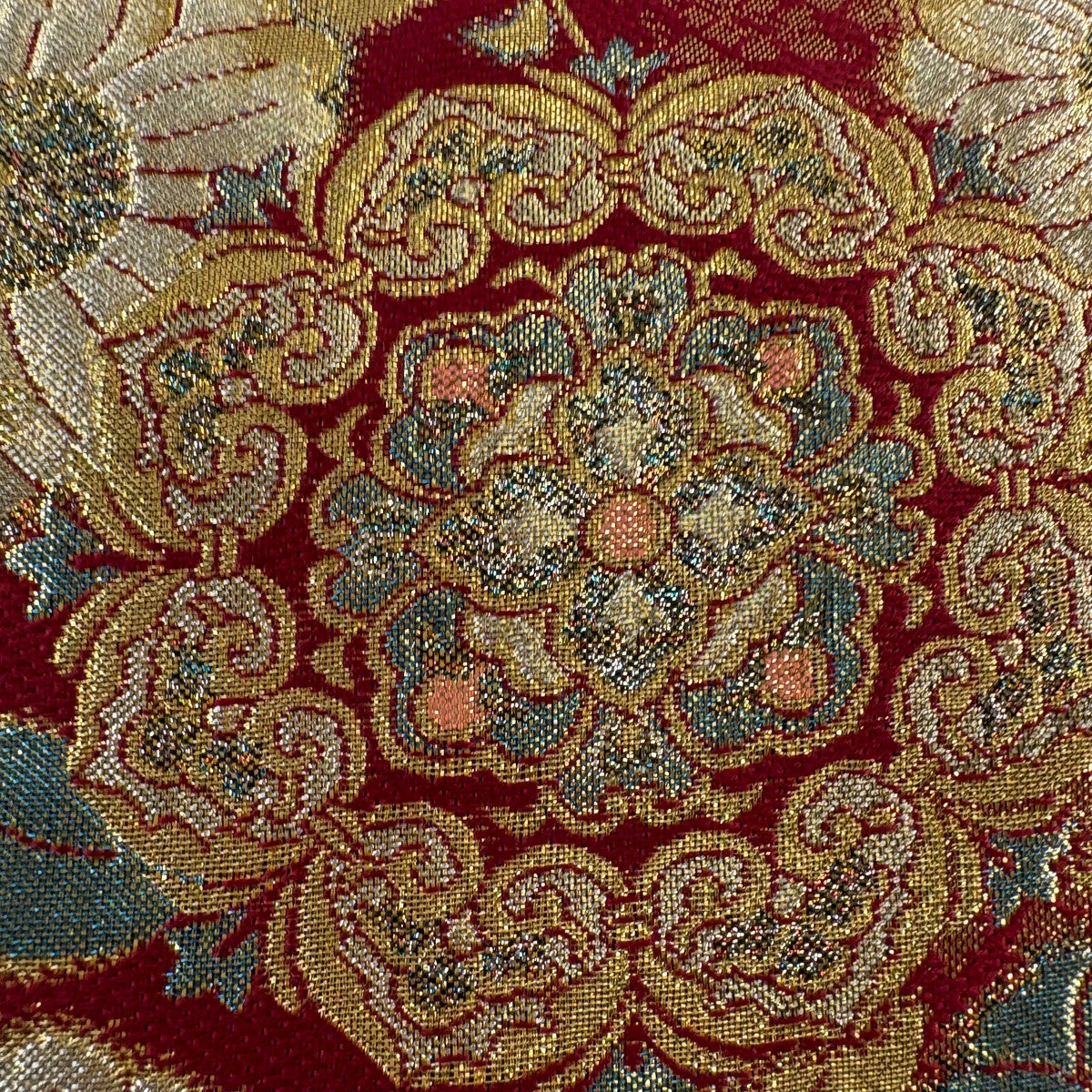 50%OFF 【美品】 袋帯 秀品 華文 椿 唐織 箔 茜色 六通 正絹 K50