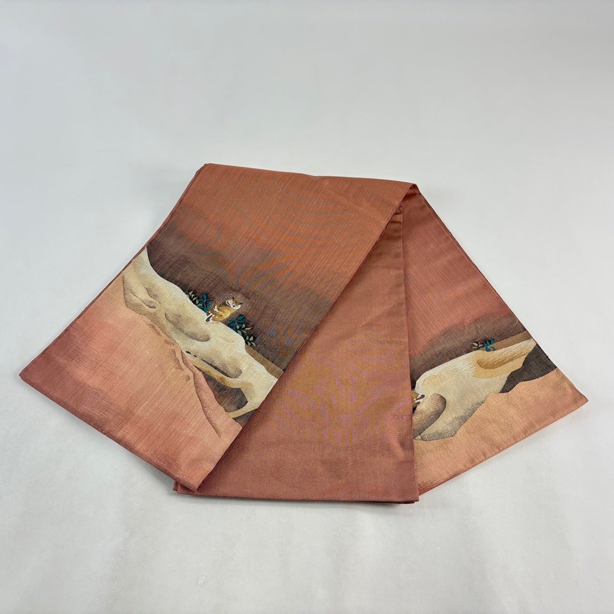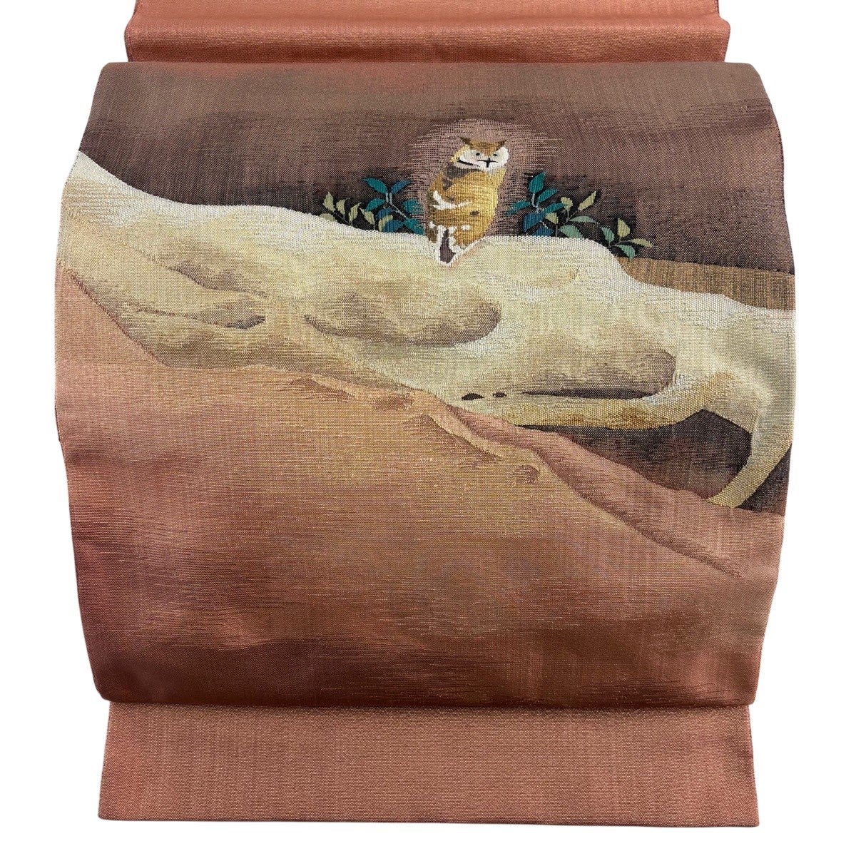 50%OFF 【美品】 袋帯 秀品 関西仕立て 花兎 茜色 お太鼓柄 正絹 K50