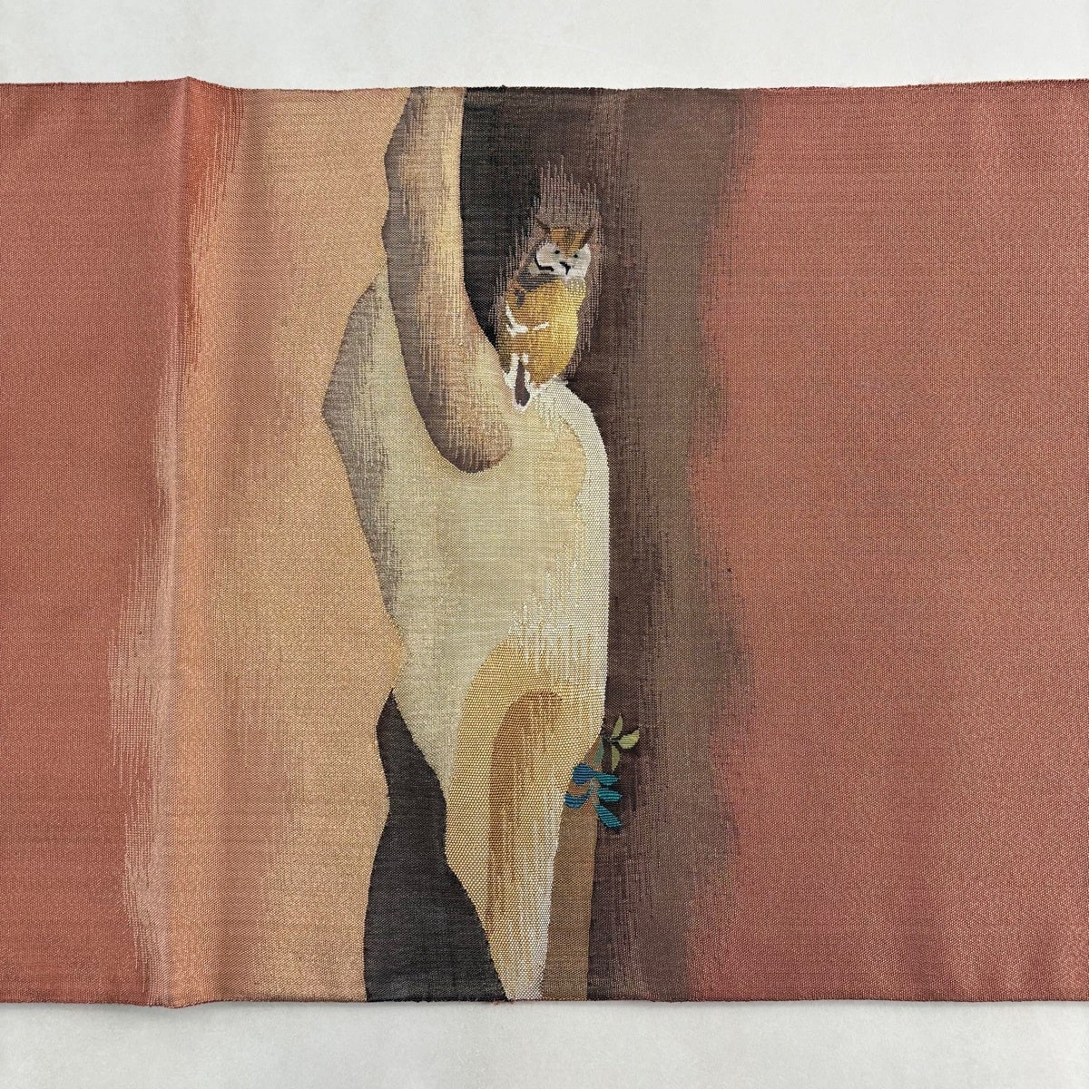 50%OFF 袋帯 秀品 関西仕立て 桜 鳳凰 唐織 箔 茜色 六通 正絹 K50