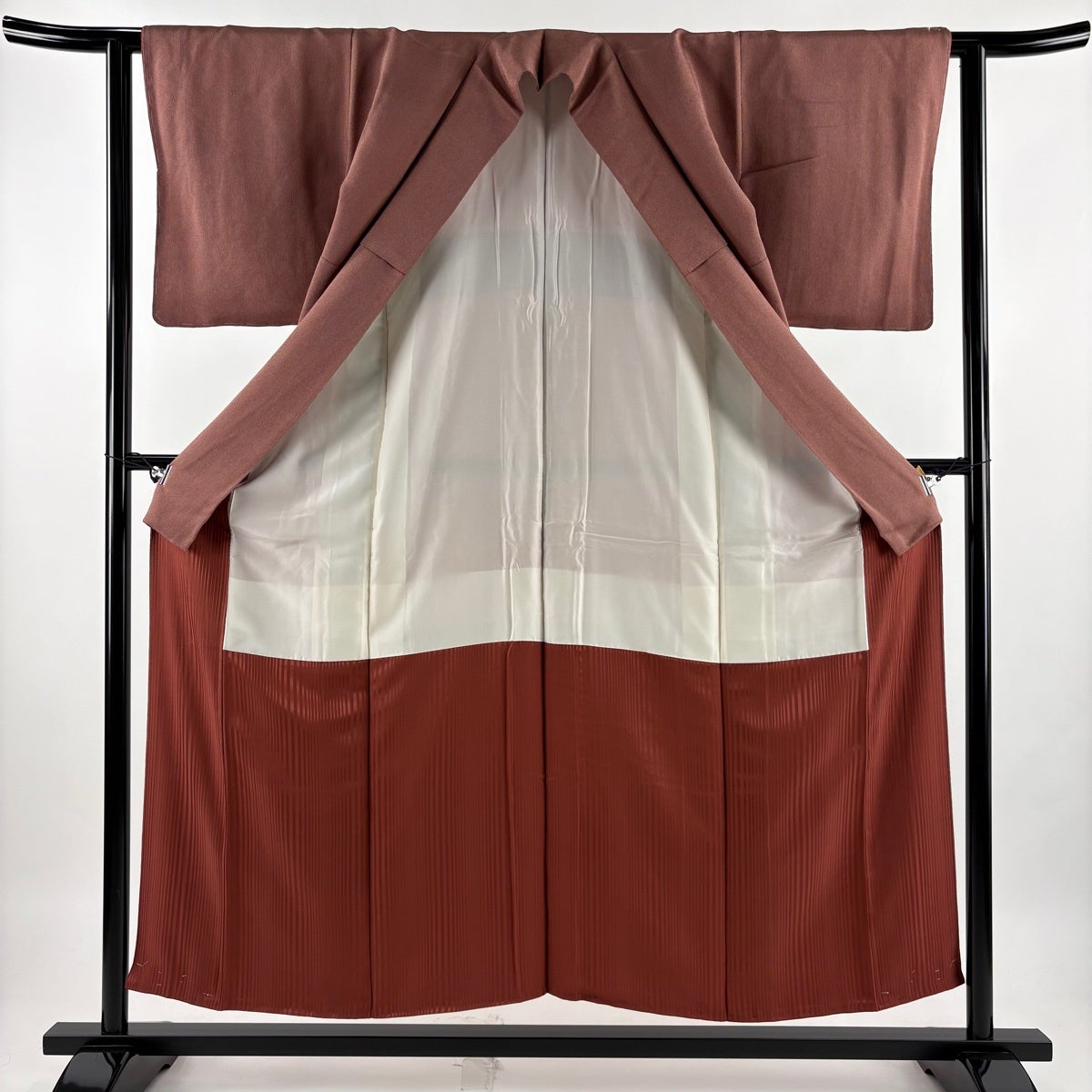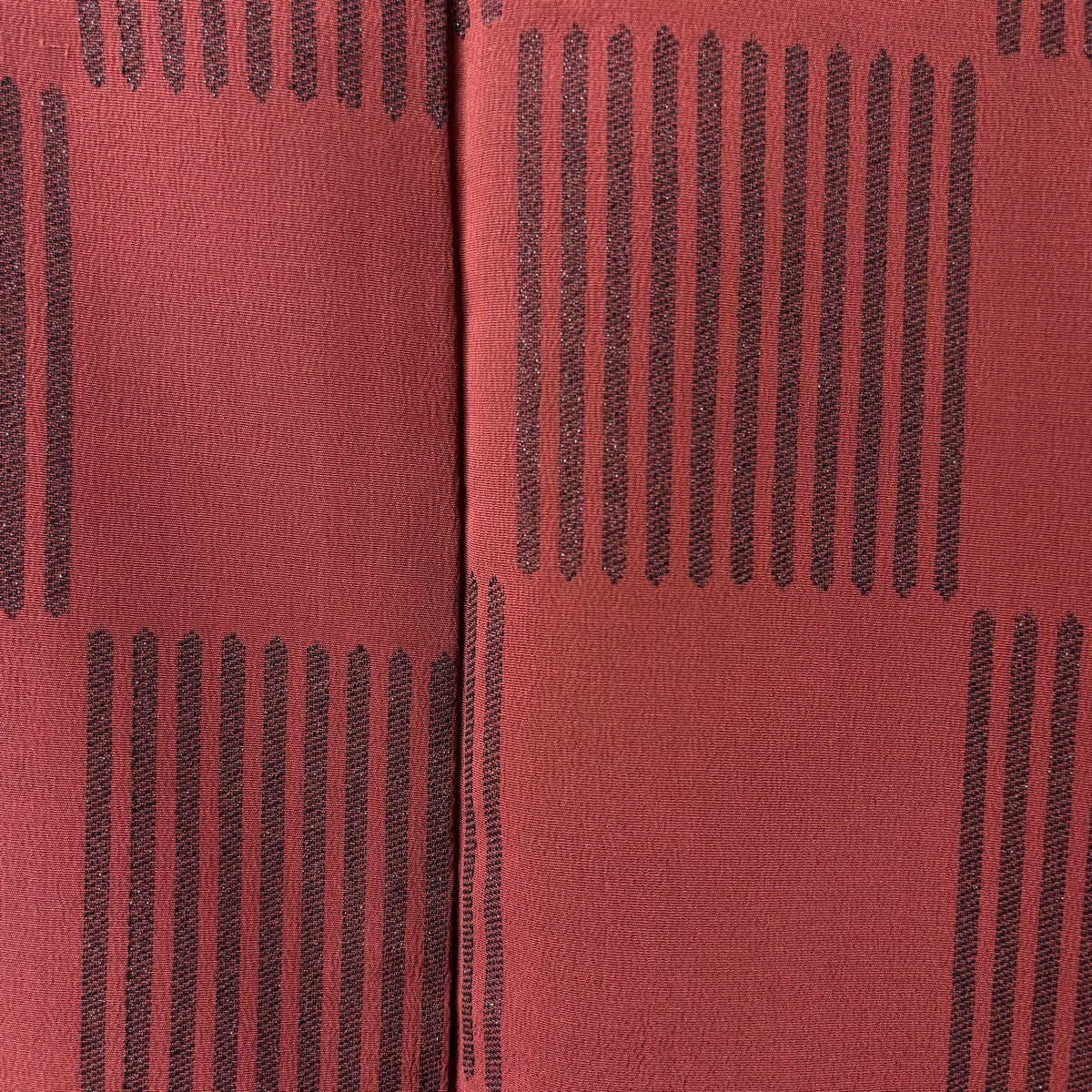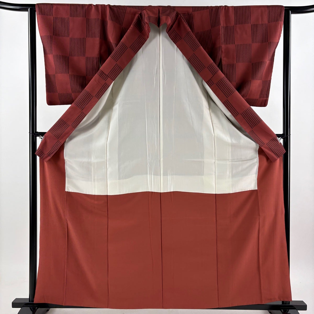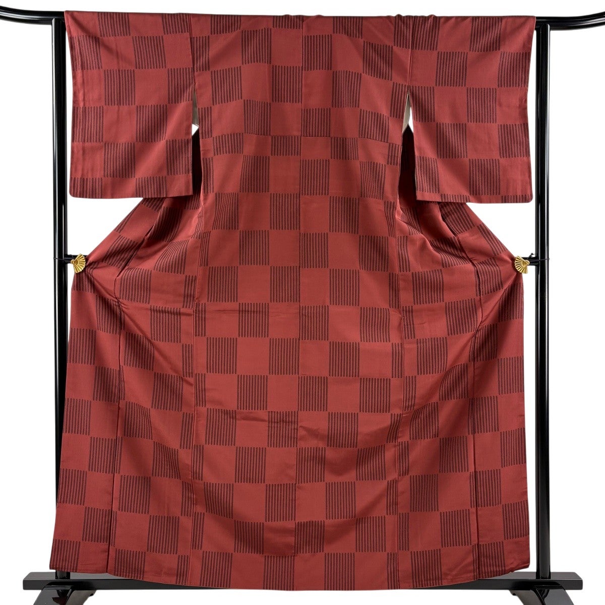 小紋 身丈161.5cm 裄丈63cm S 袷 変わり市松 縞 銀糸 茜色 正絹 優品