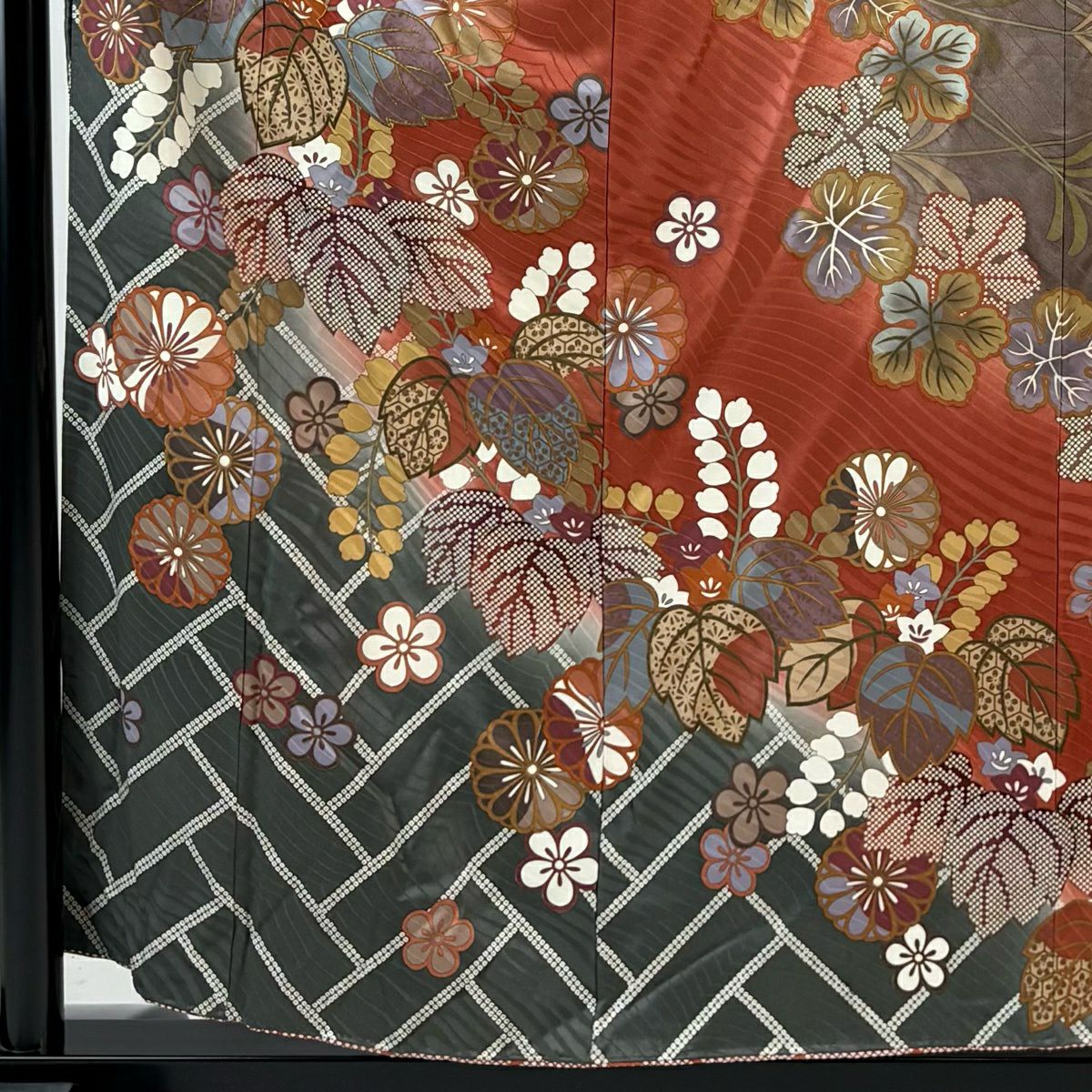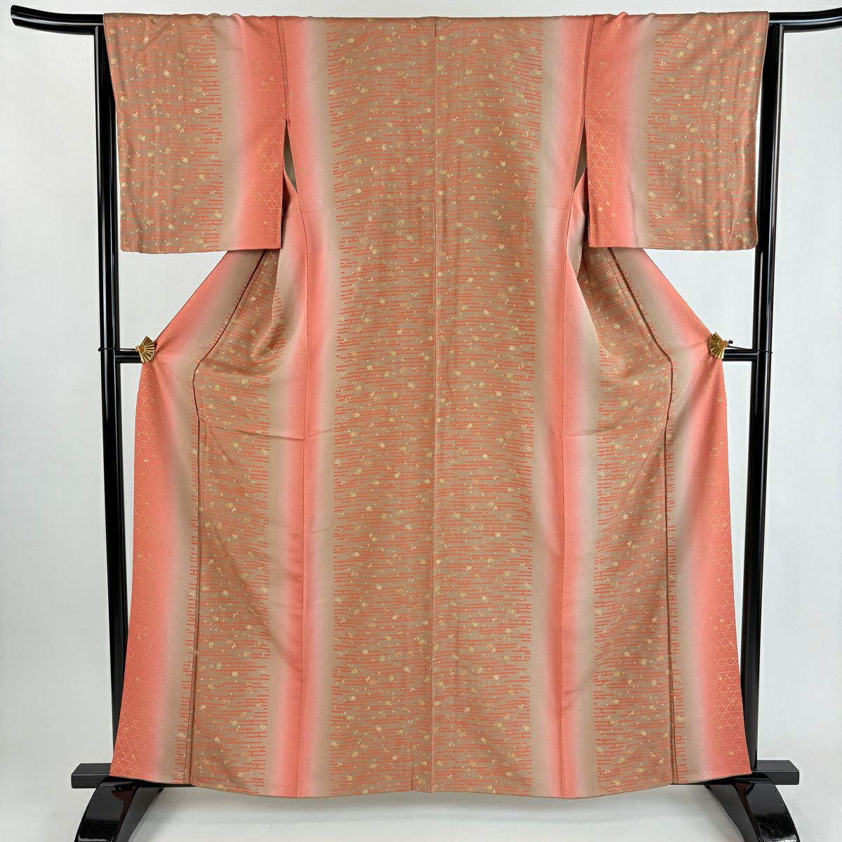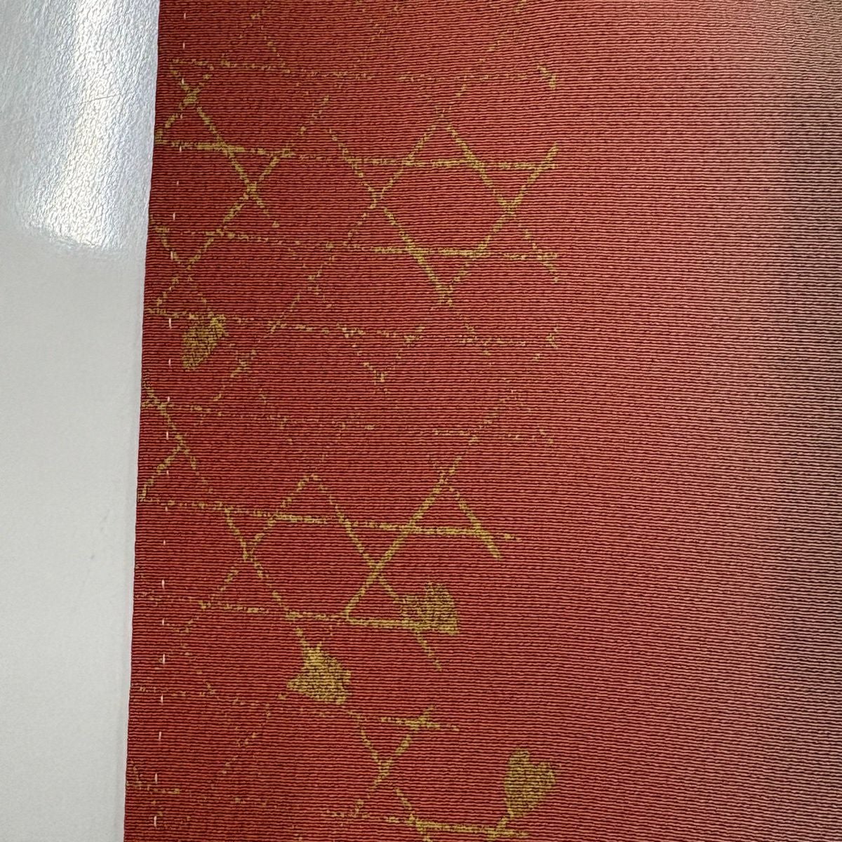 訪問着 身丈164cm 裄丈67.5cm L 袷 菊 桧垣 金彩 ぼかし 茜色 正絹 秀品