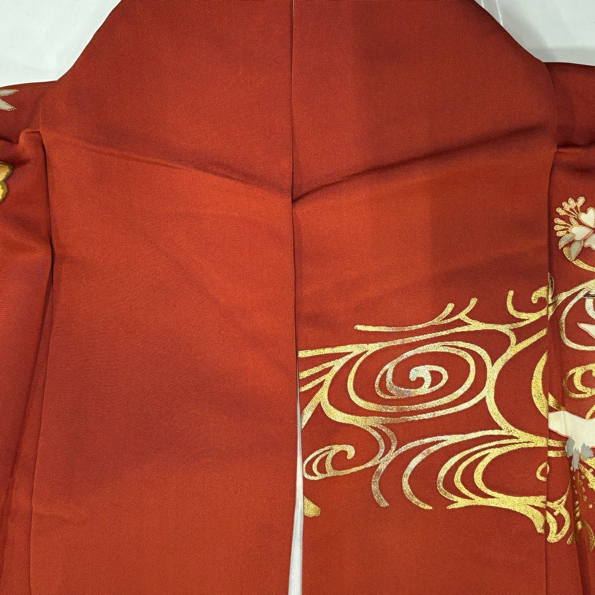 振袖 身丈162cm 裄丈66.5cm M 袷 松竹梅 鶴 金糸 金銀彩 茜色 正絹 秀品