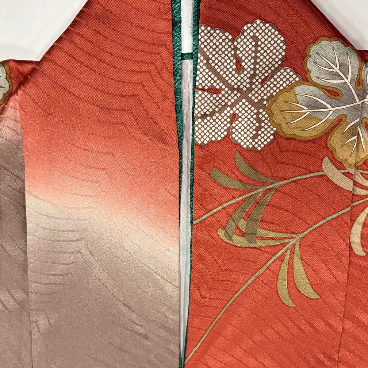 振袖 身丈166.5cm 裄丈67.5cm L 袷 草花 金通し ぼかし 茜色 正絹 名品