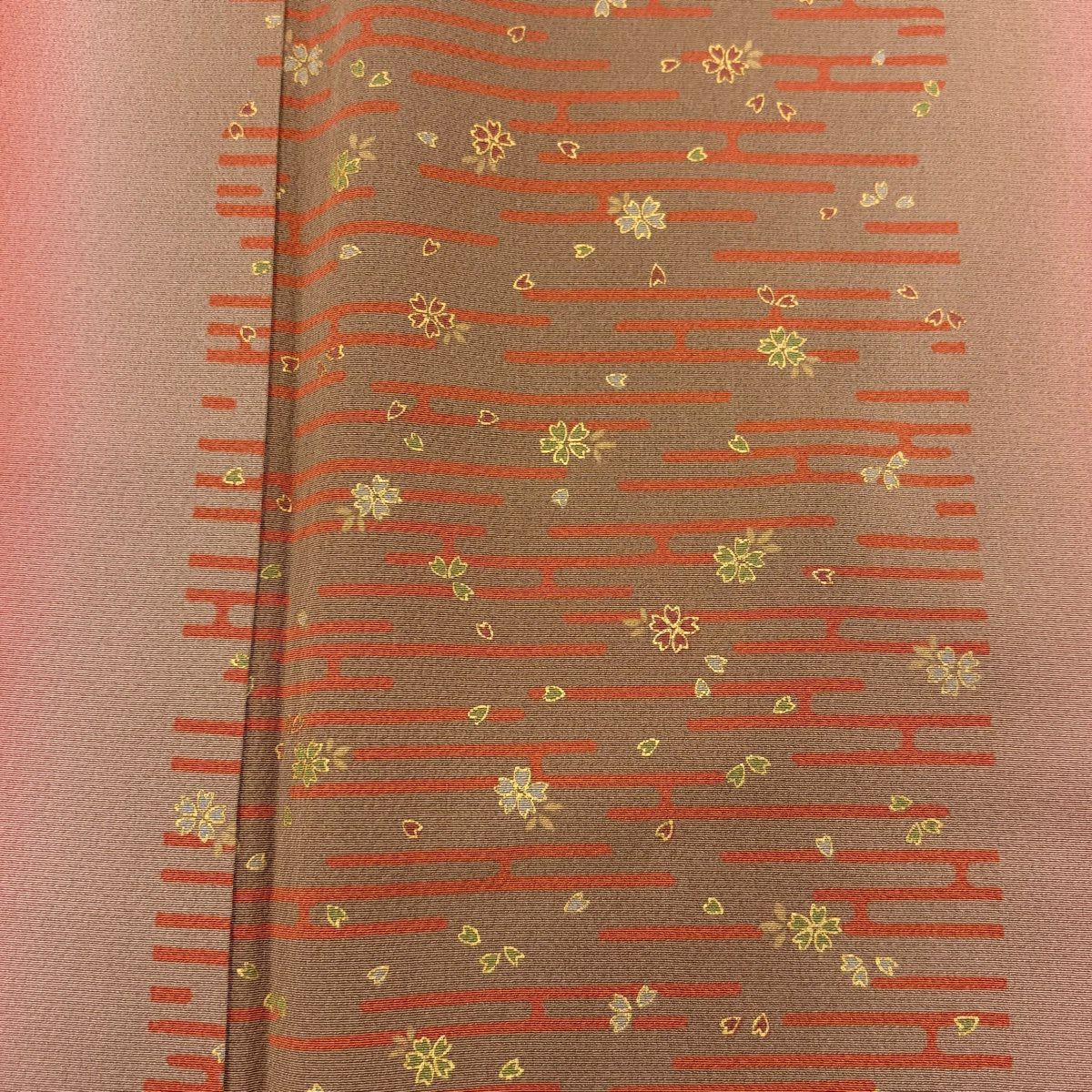 振袖 身丈156cm 裄丈64cm M 袷 破れ色紙 桜 金彩 ぼかし 茜色 正絹 秀品
