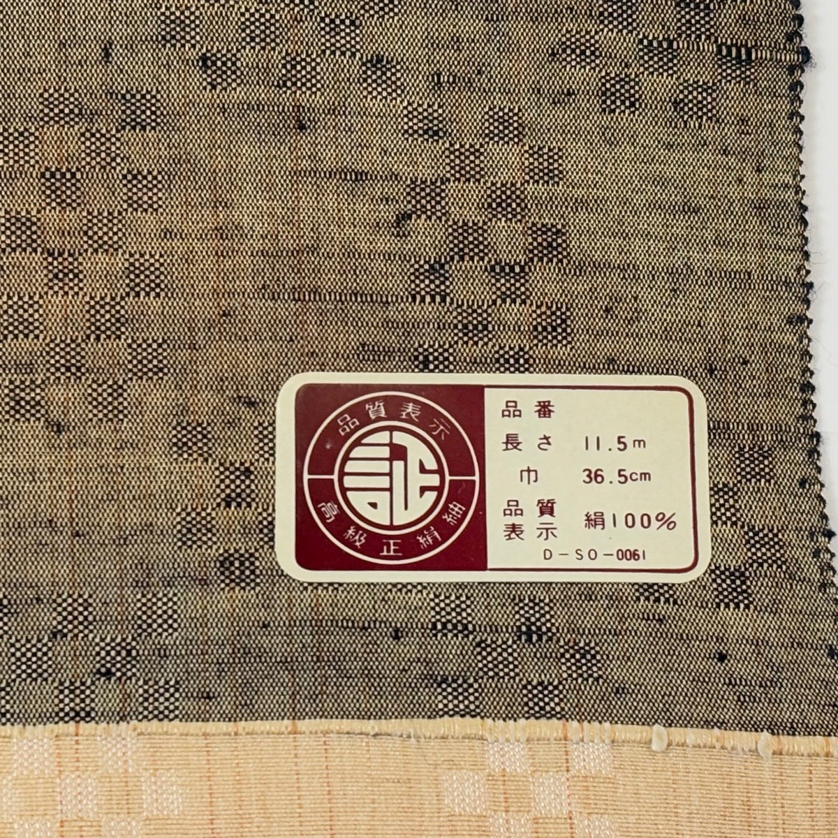 反物 秀品 紬 市松 ぼかし柄 茶色 正絹