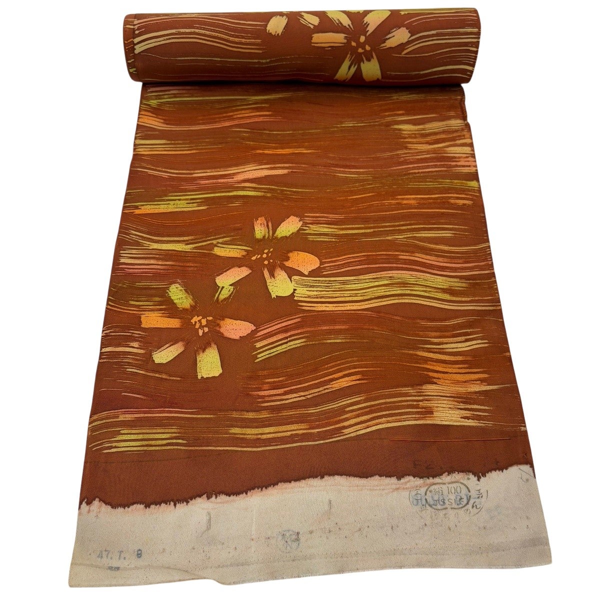 反物 優品 羽尺 羽織 和装コート 花 霞 茶色 正絹