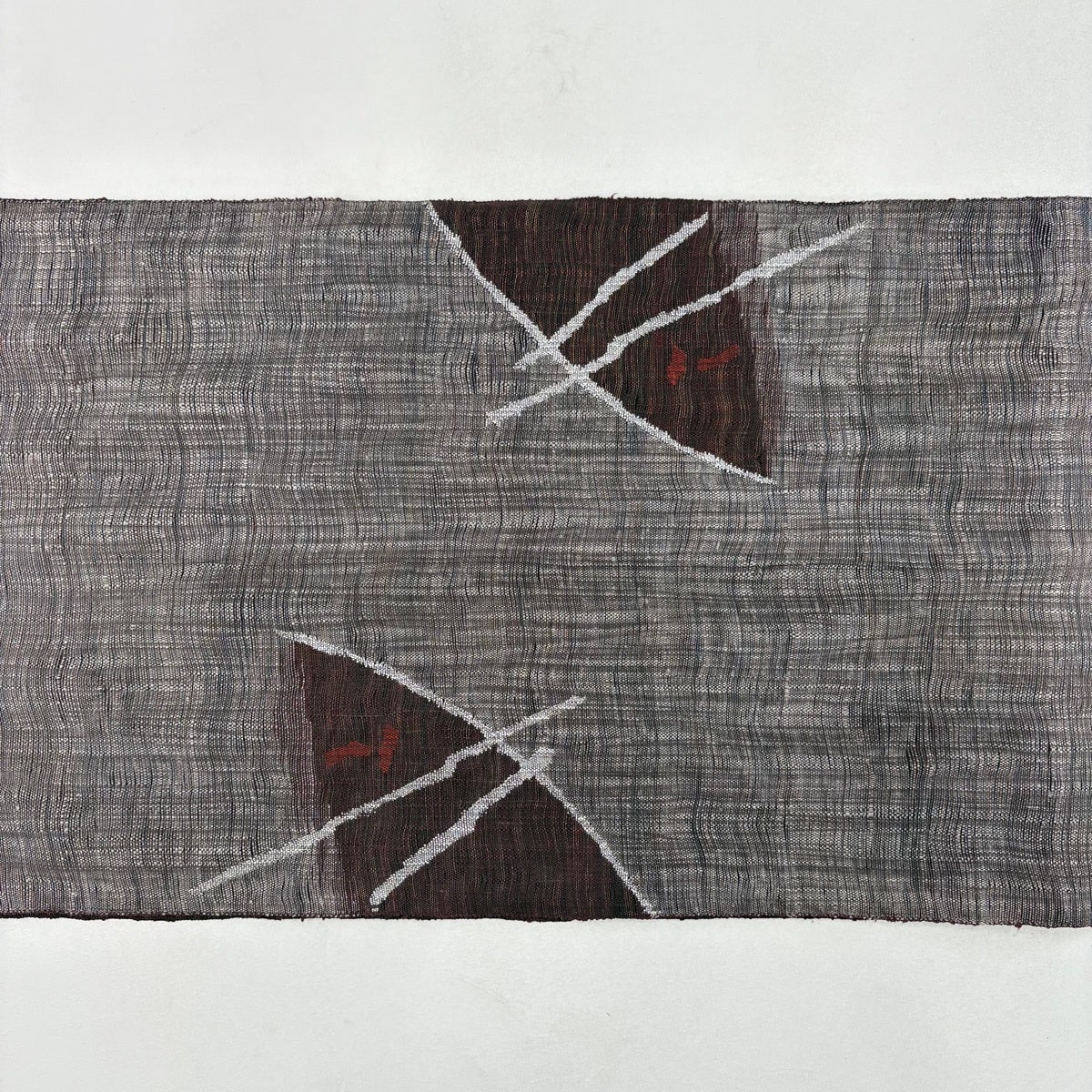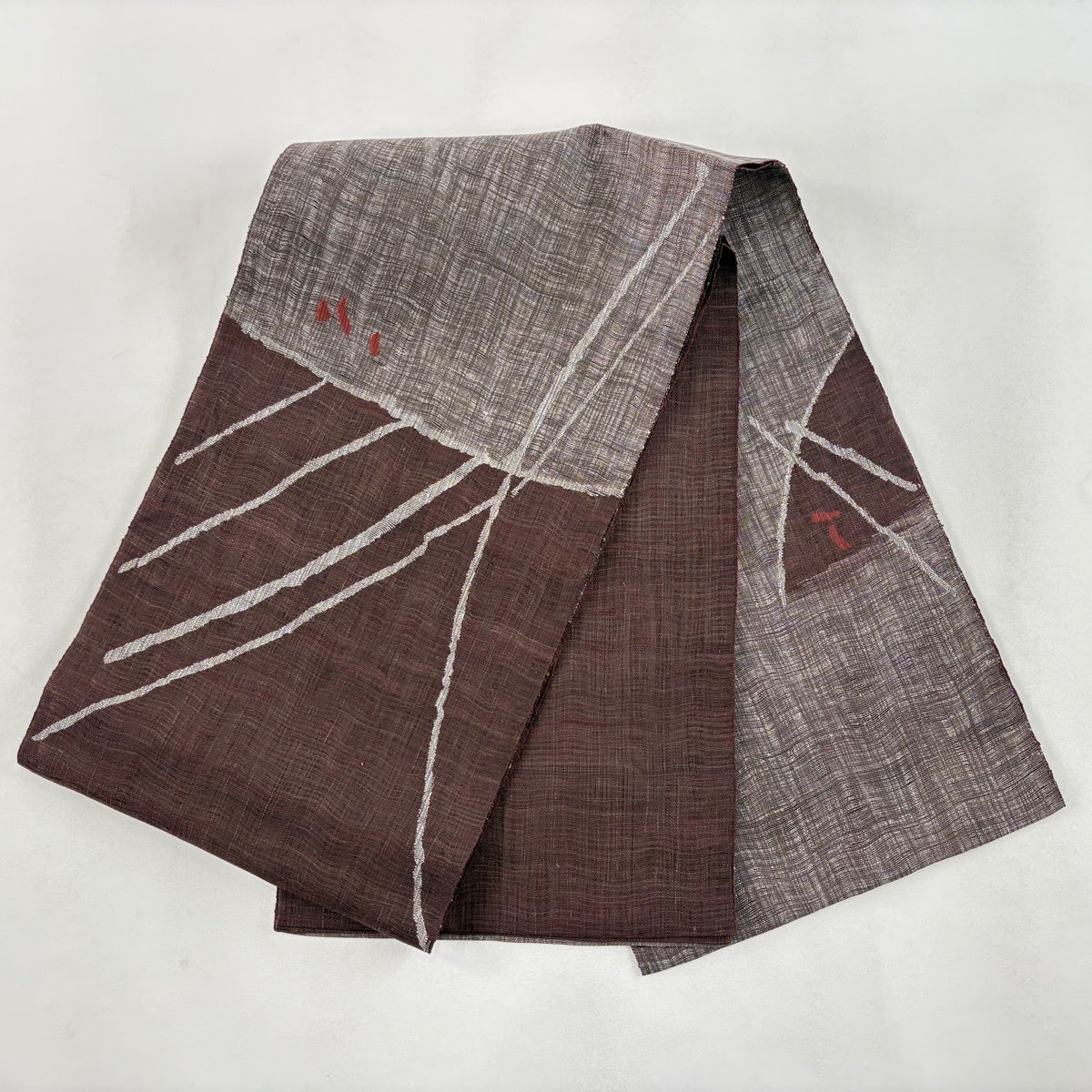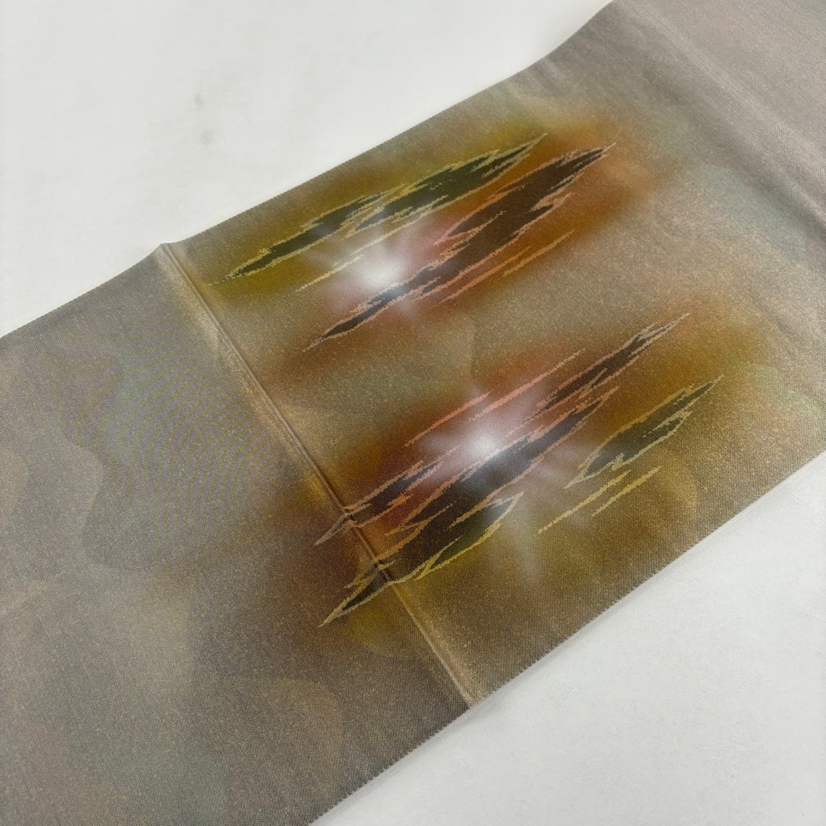70%OFF 【美品】 袋帯 秀品 幾何学 金糸 箔 茶紫 お太鼓柄 正絹 K70