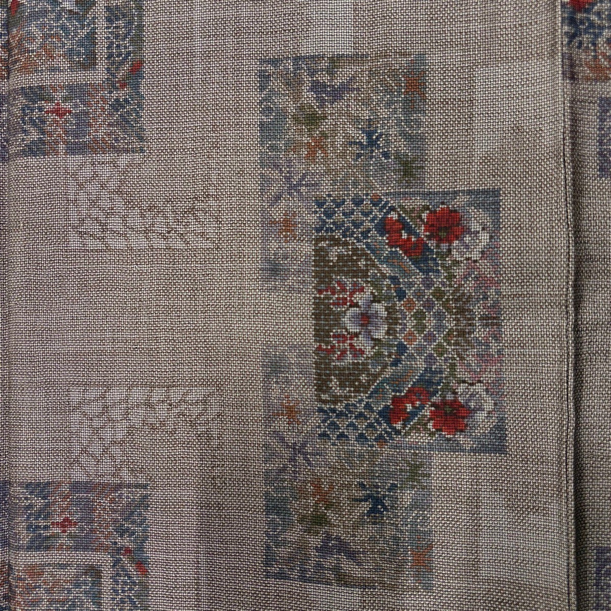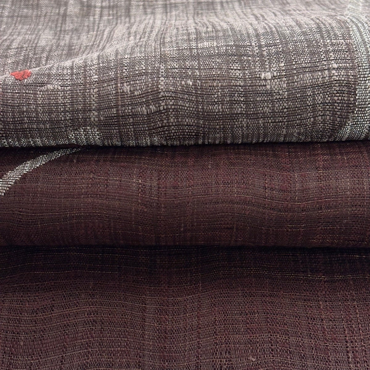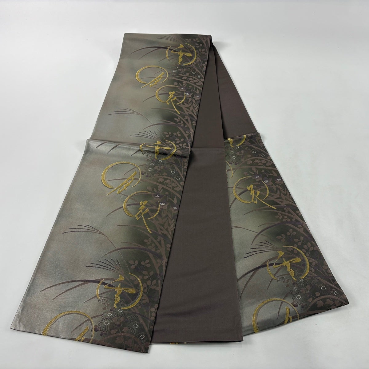 30%OFF 【美品】 開き名古屋帯 秀品 草花 芝 箔 唐織 茶紫 正絹 K30
