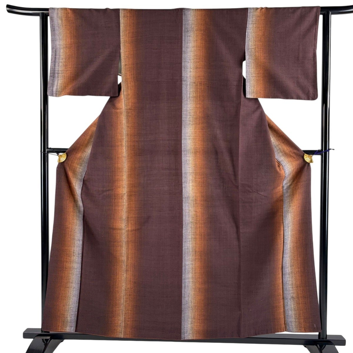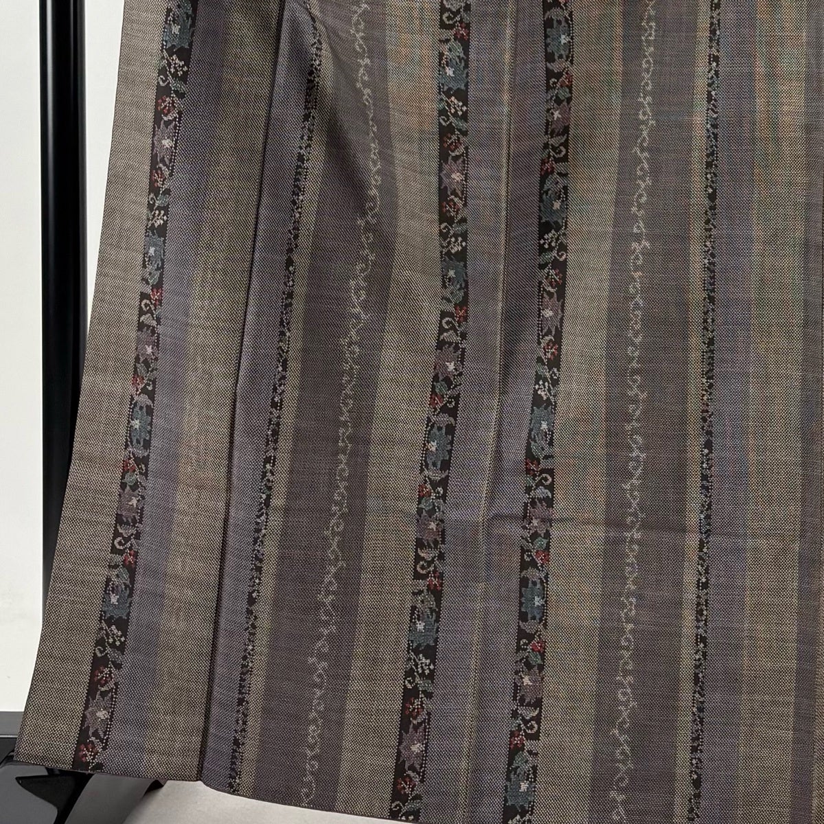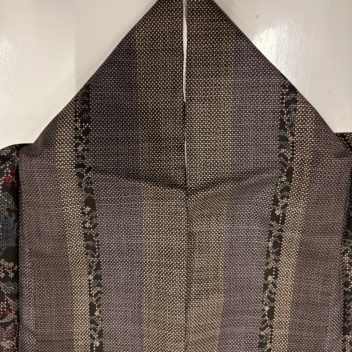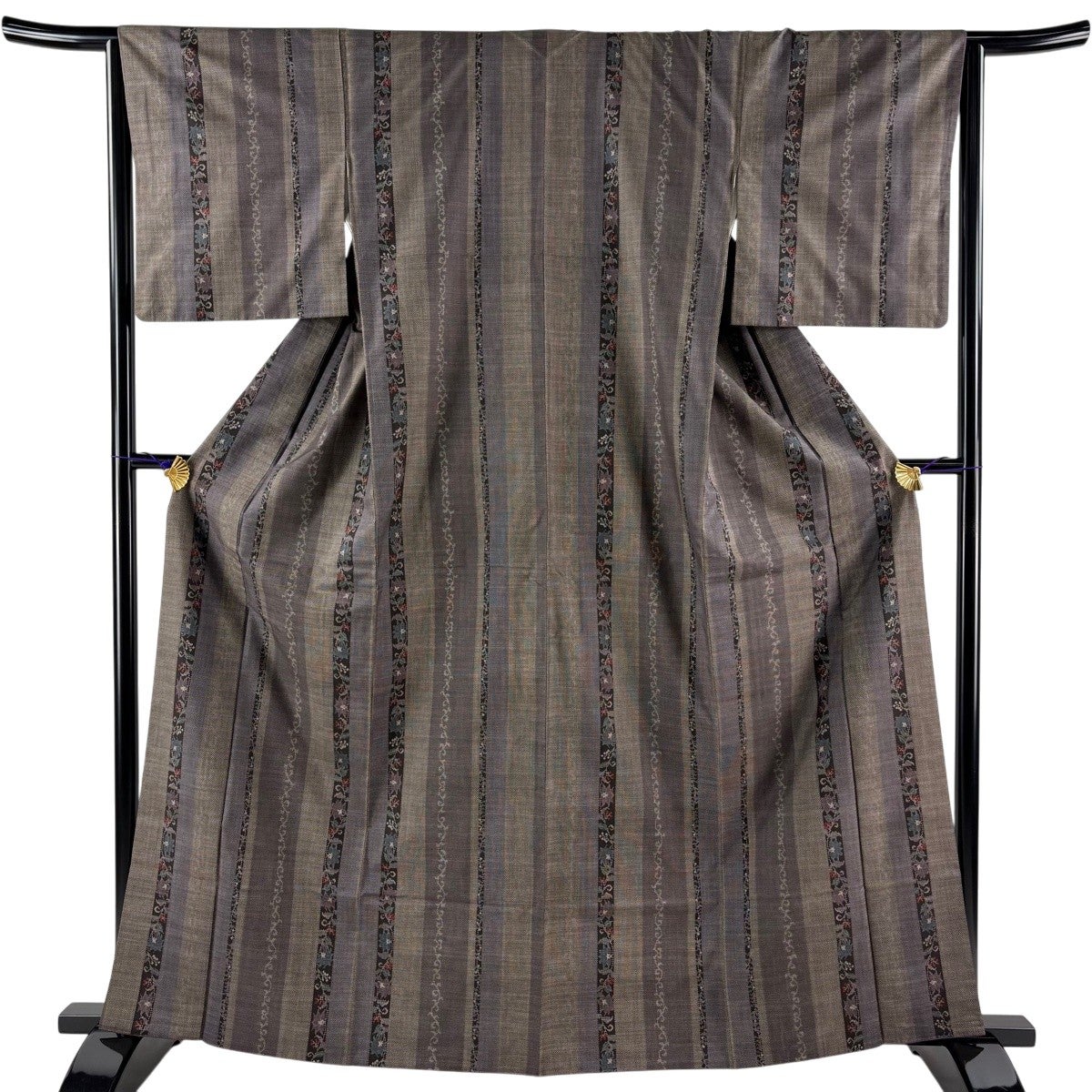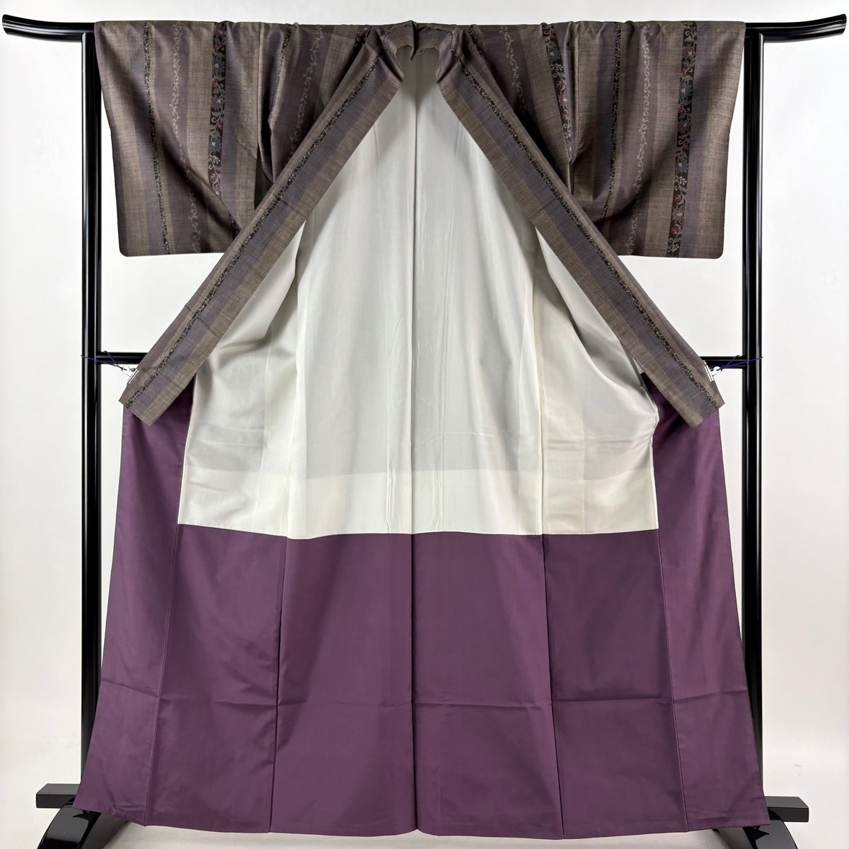 30%OFF 紬 身丈159cm 裄丈63cm S 袷 縞 茶紫 正絹 秀品 K30