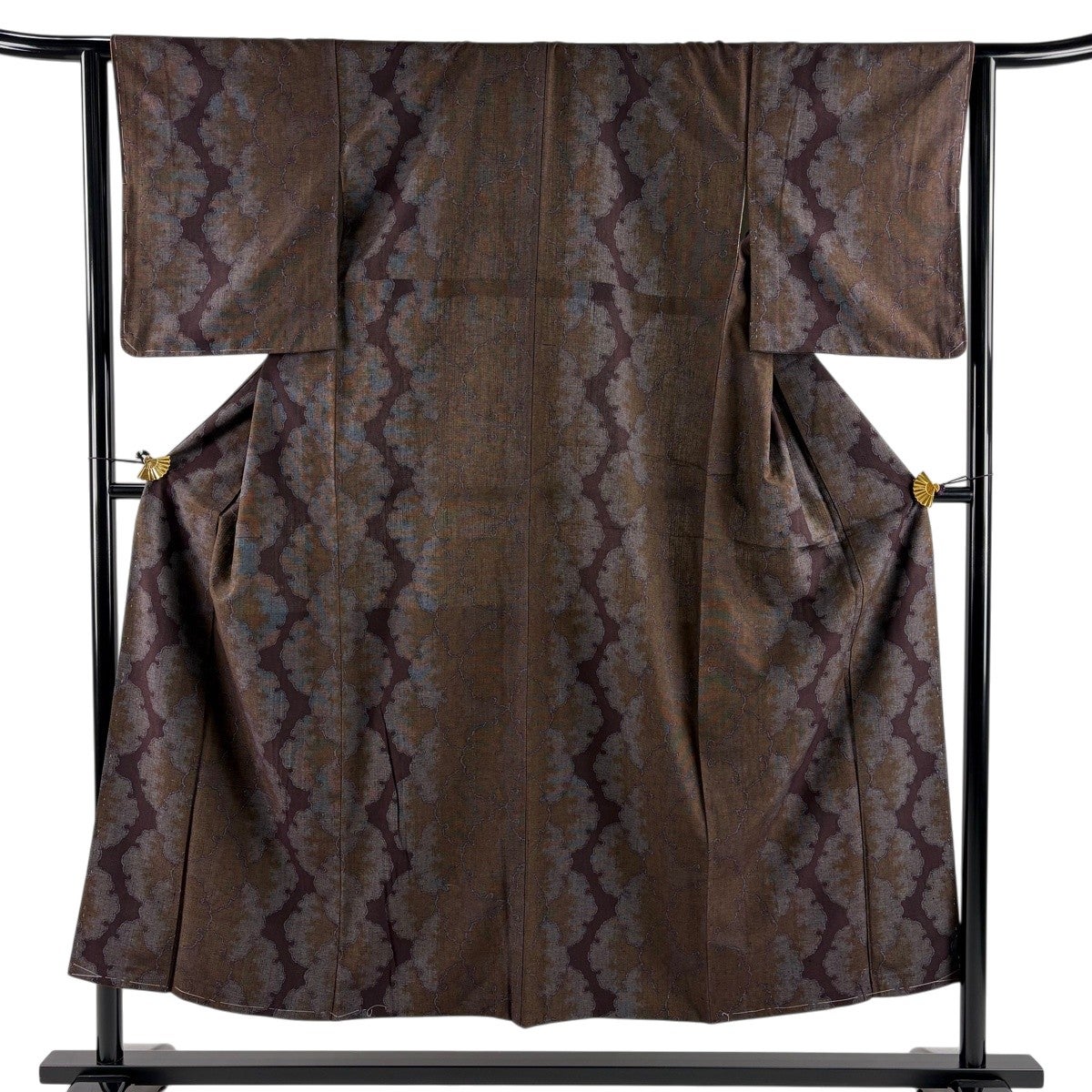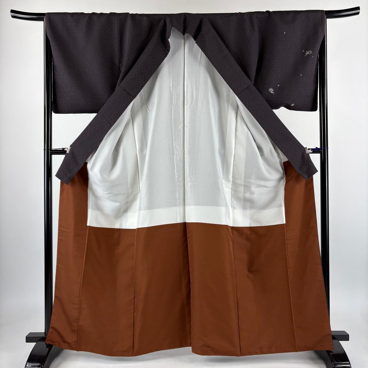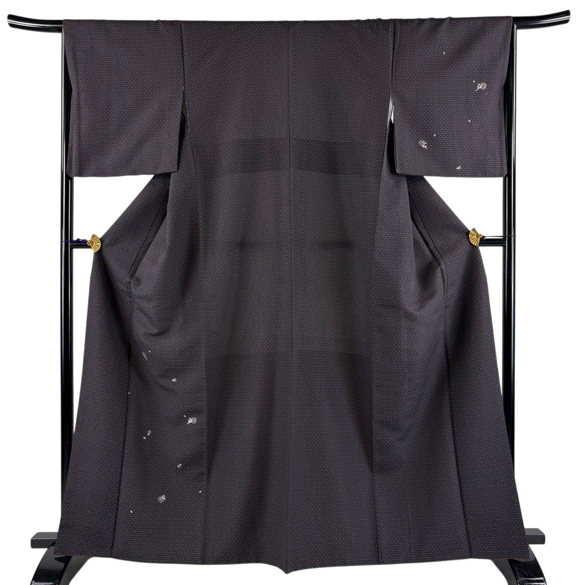 付下げ 身丈164.5cm 裄丈66.5cm M 袷 うさぎ 月 螺鈿箔 茶紫 正絹 逸品
