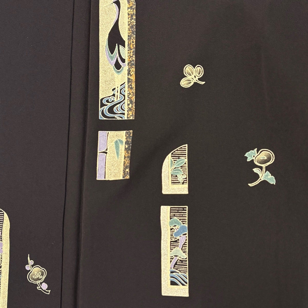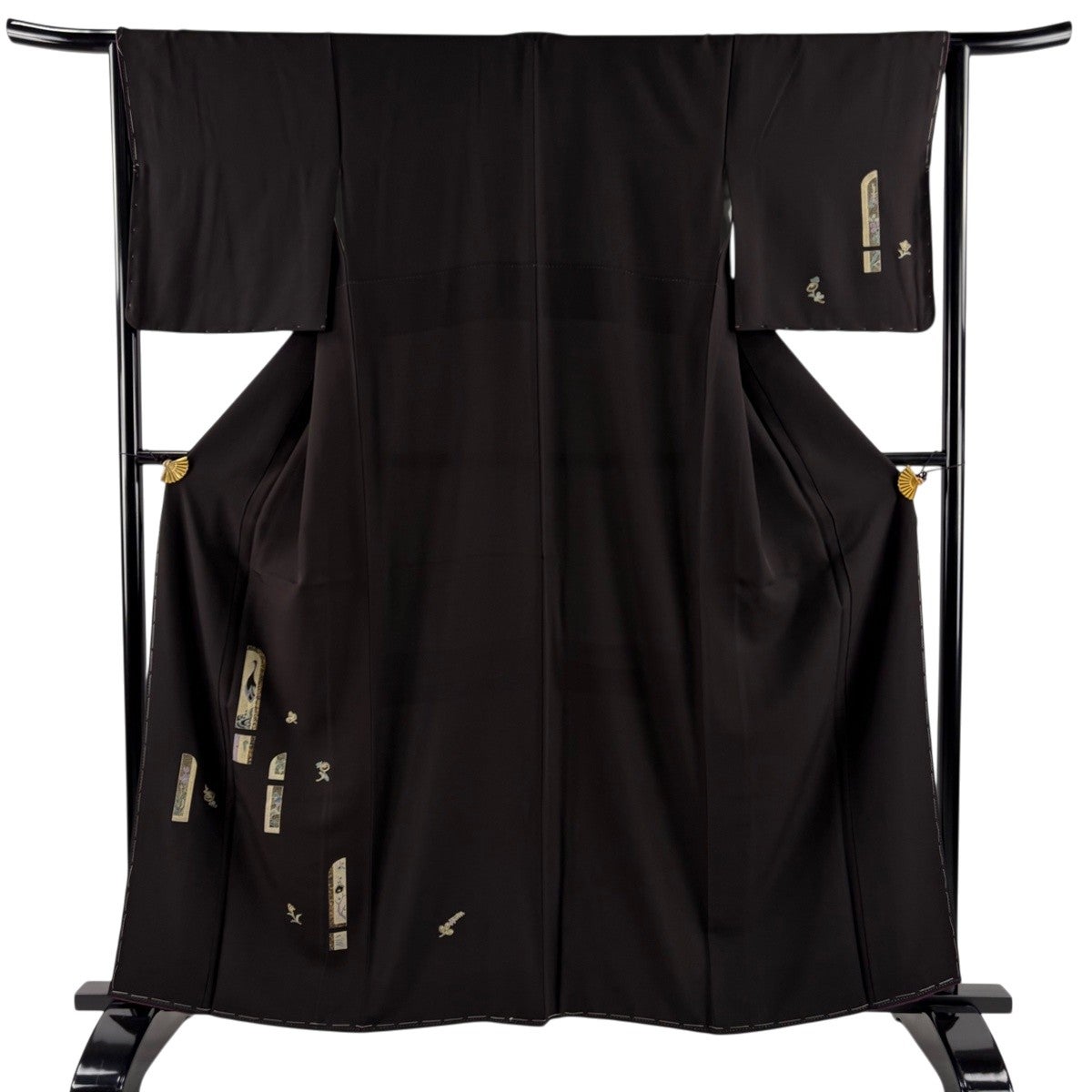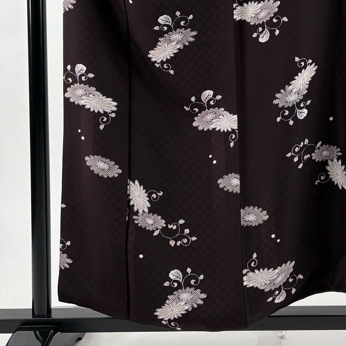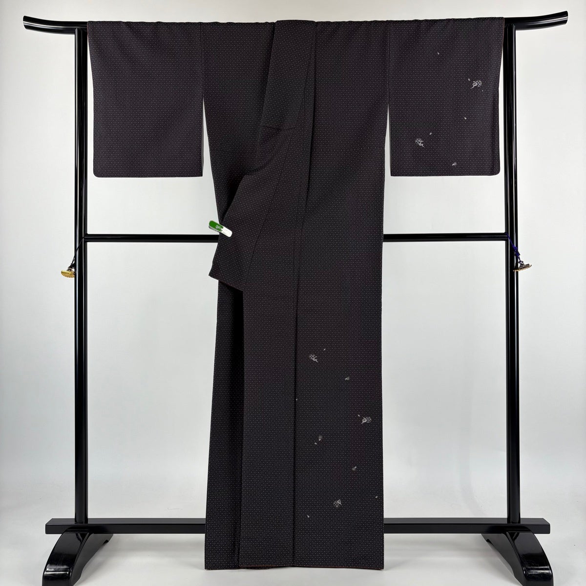 付下げ 身丈164.5cm 裄丈66.5cm M 袷 うさぎ 月 螺鈿箔 茶紫 正絹 逸品