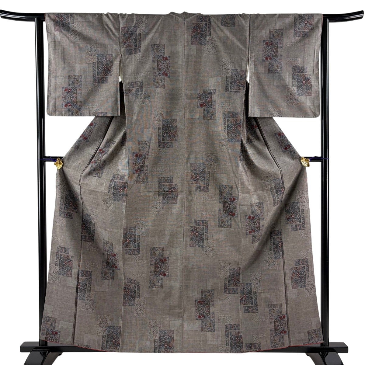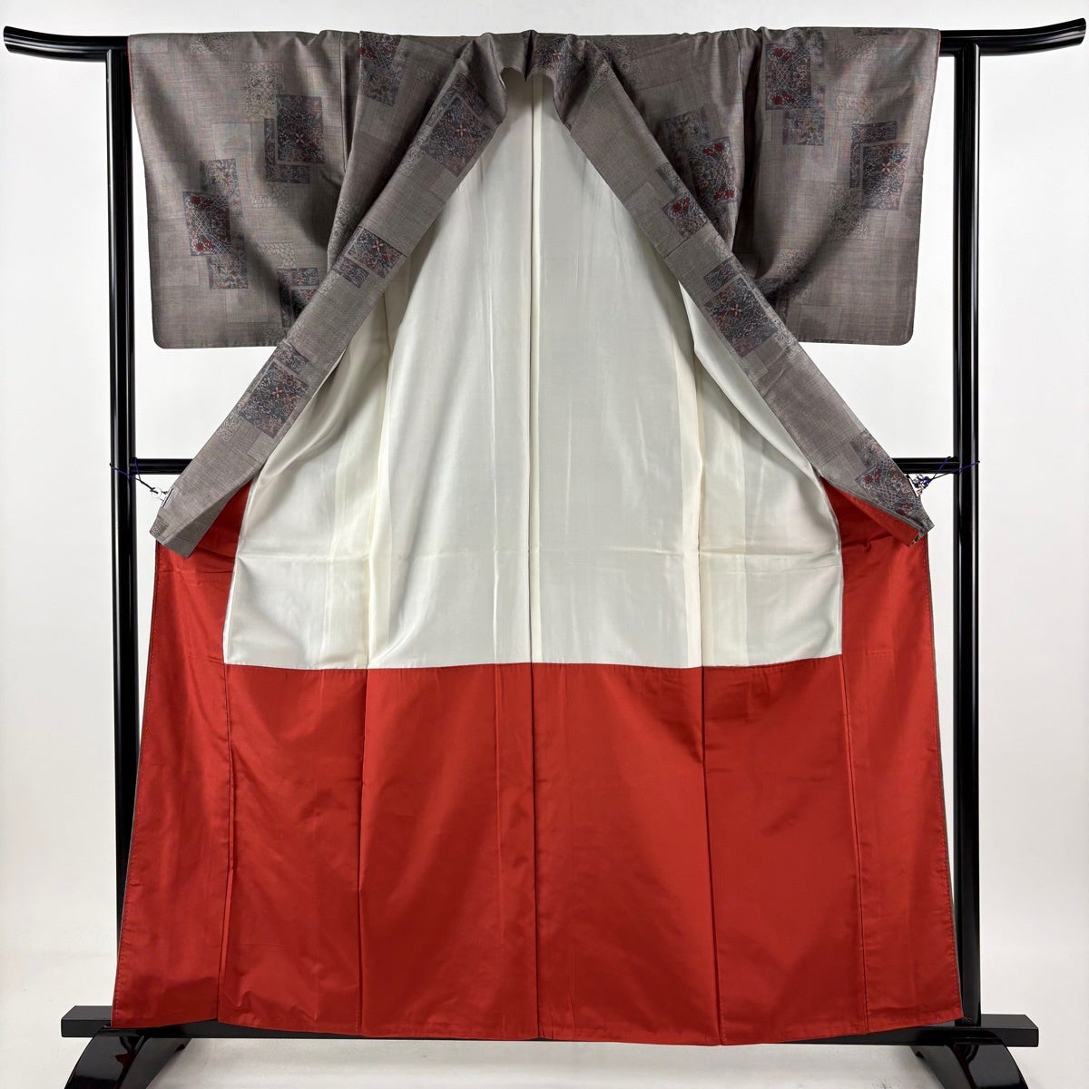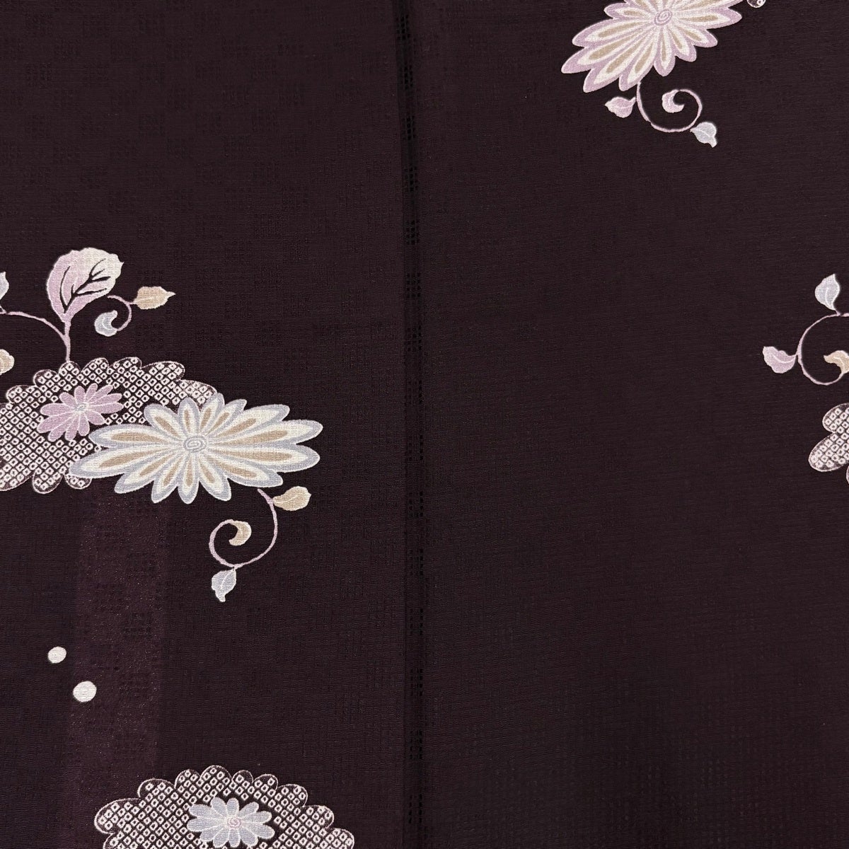【美品】 紬 身丈160cm 裄丈63.5cm S 袷 色紙 草花 茶紫 正絹 秀品