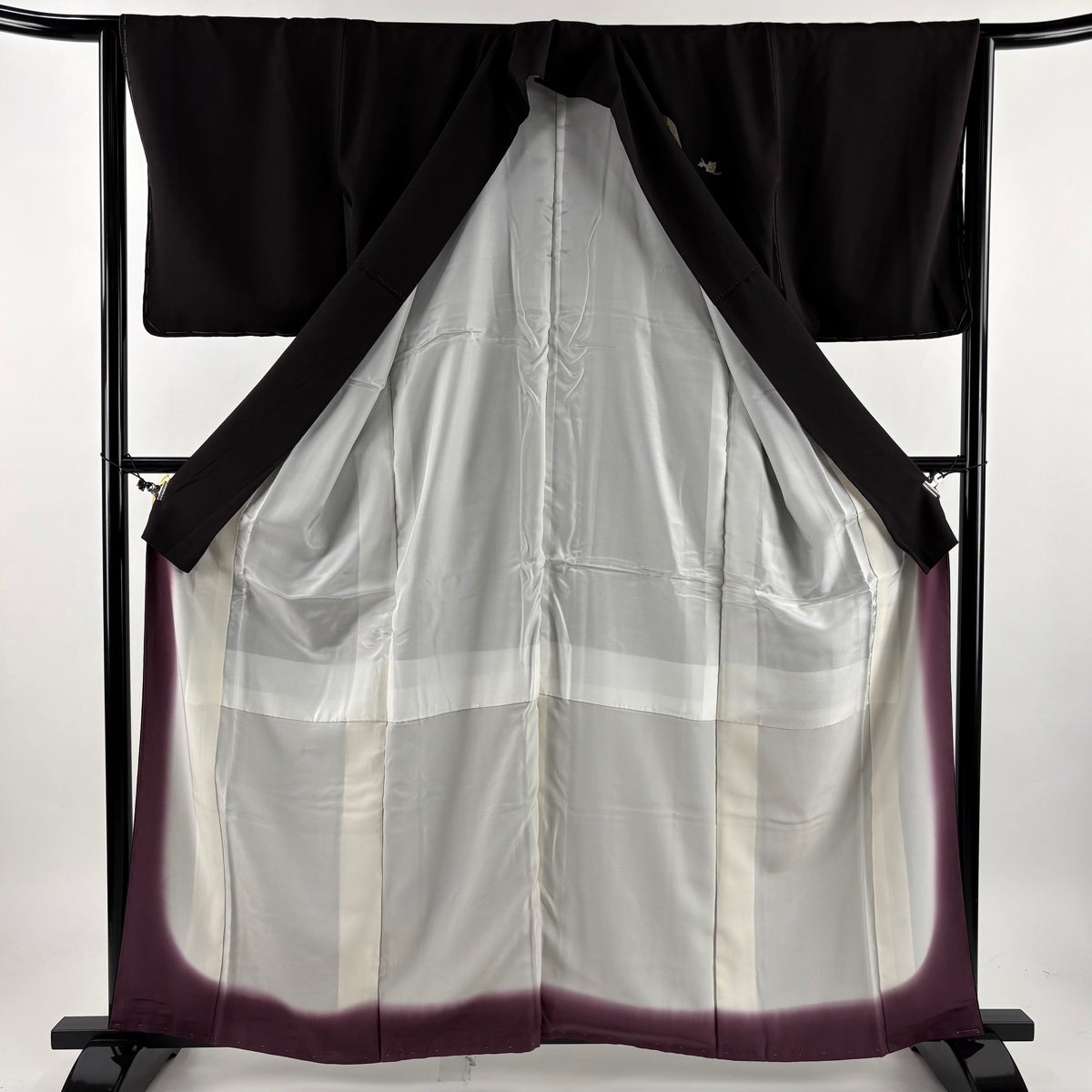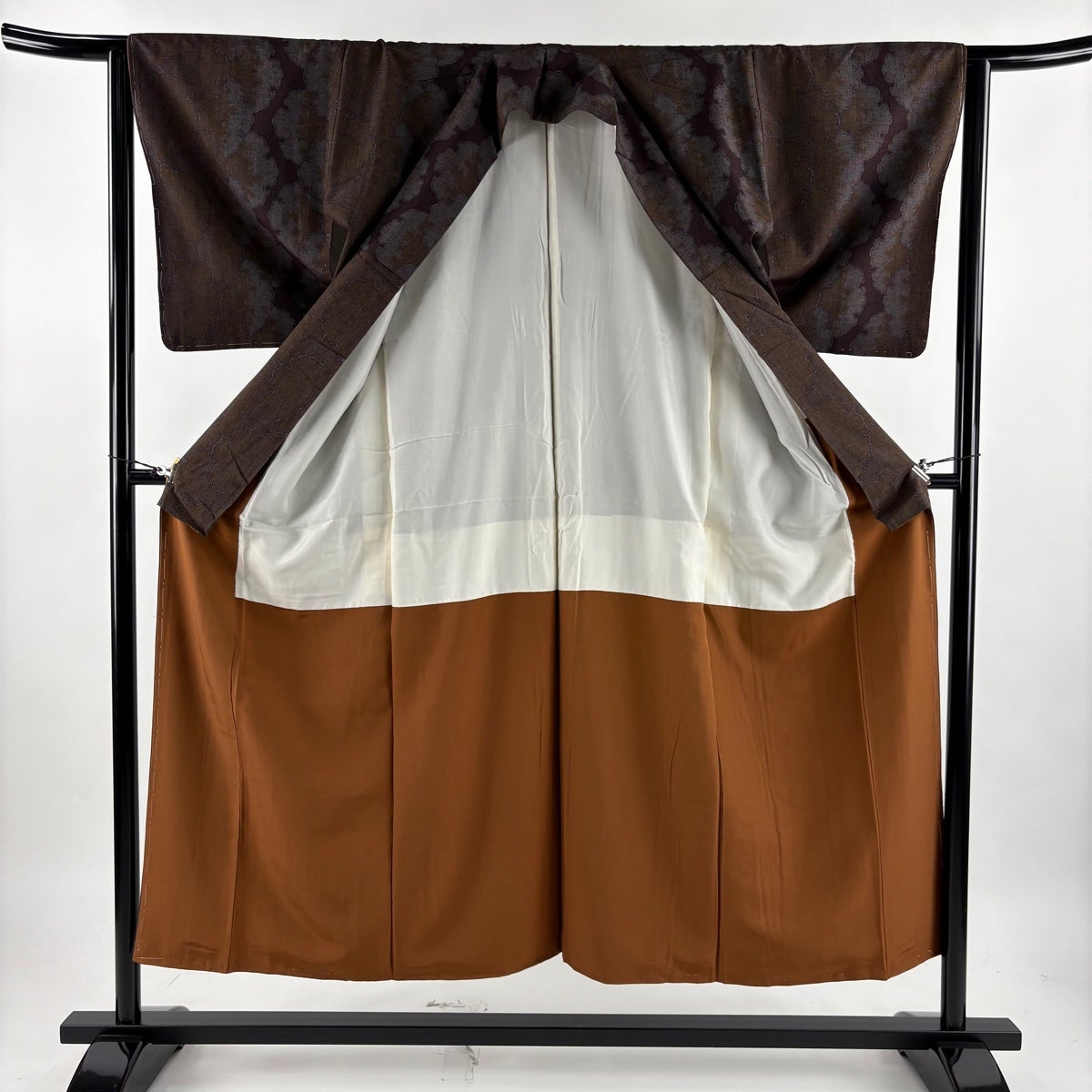付下げ 身丈160cm 裄丈64.5cm M 袷 草花 流水 金彩 茶紫 正絹 秀品