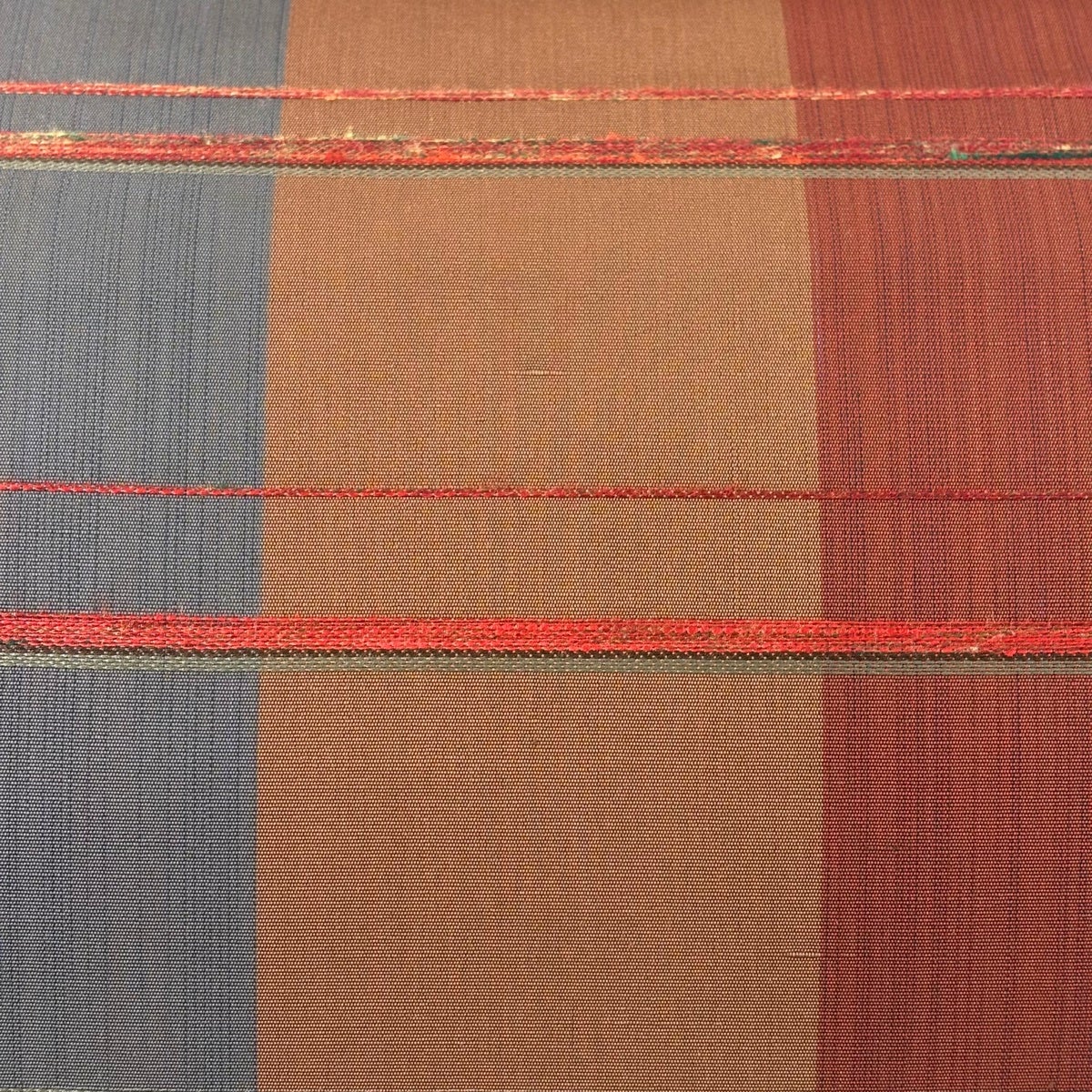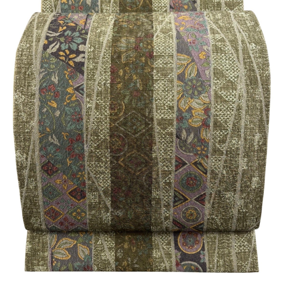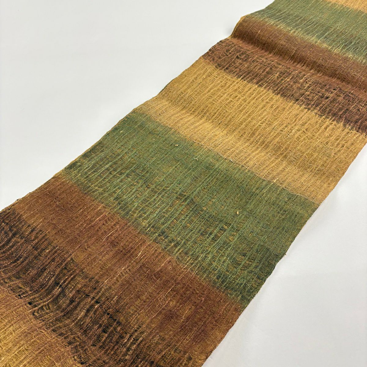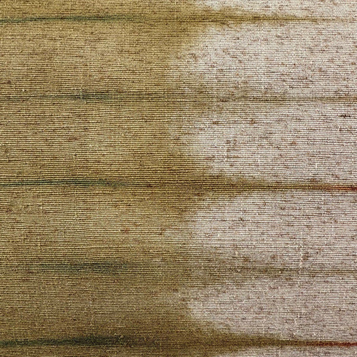 【美品】 袋帯 名品 芝 段縞 金糸 箔 茶緑色 全通 正絹