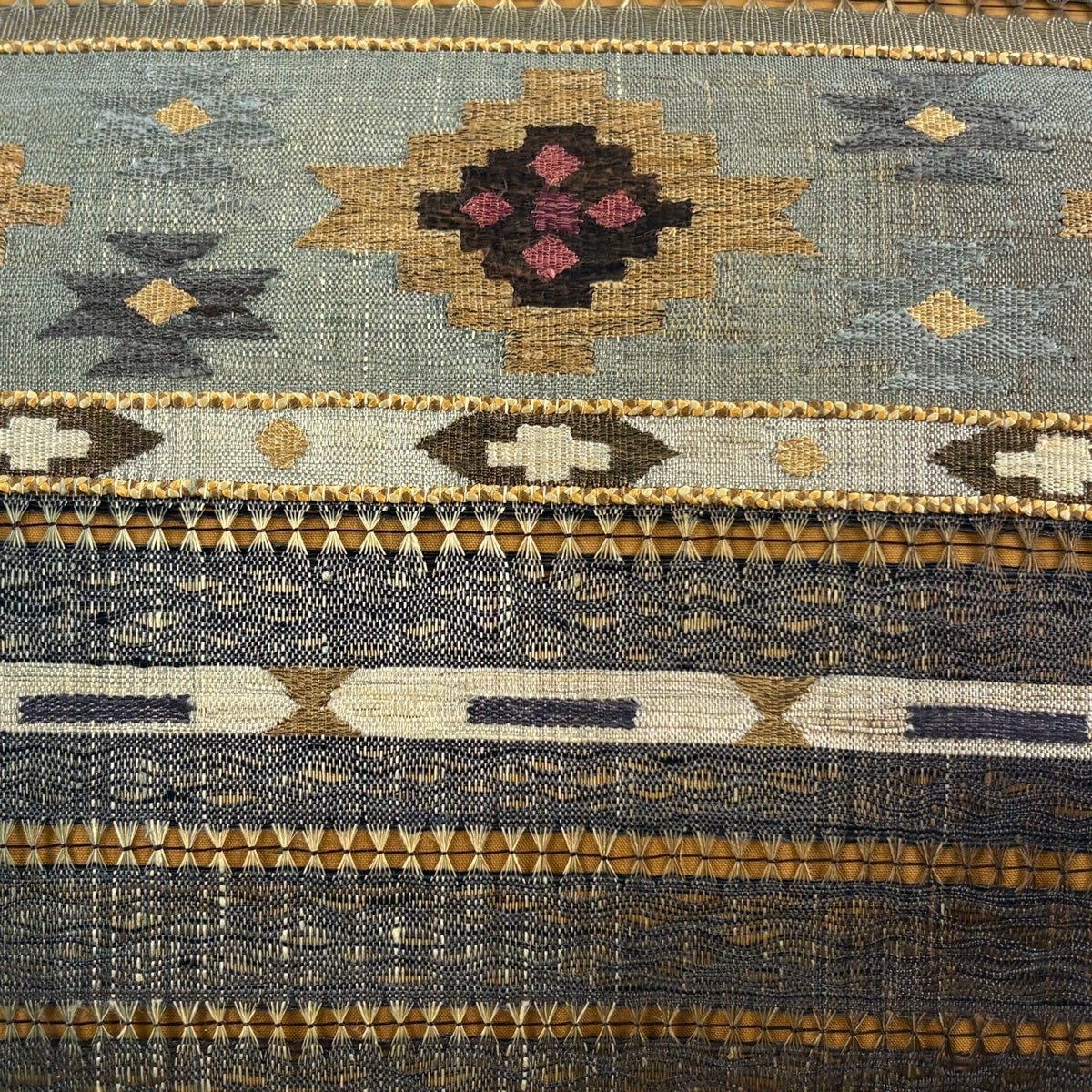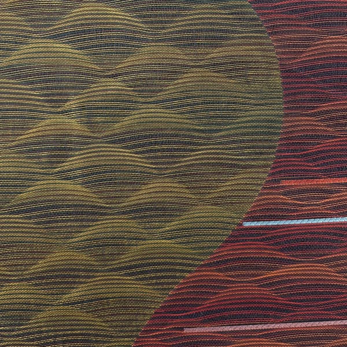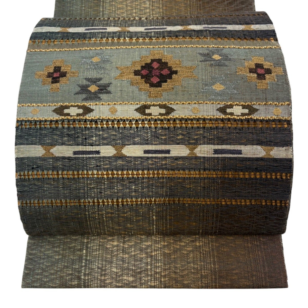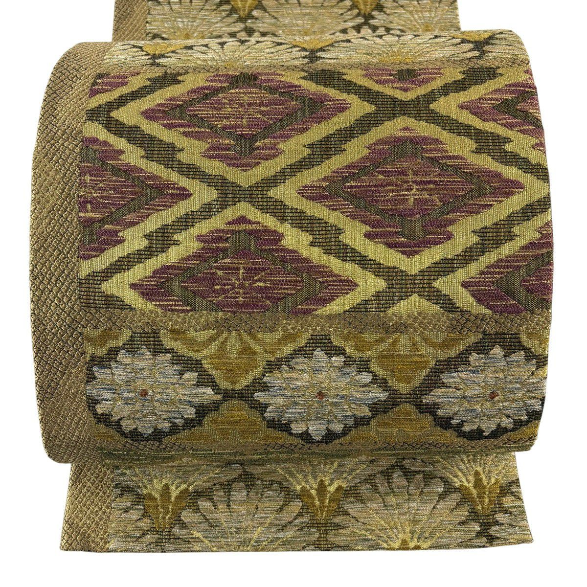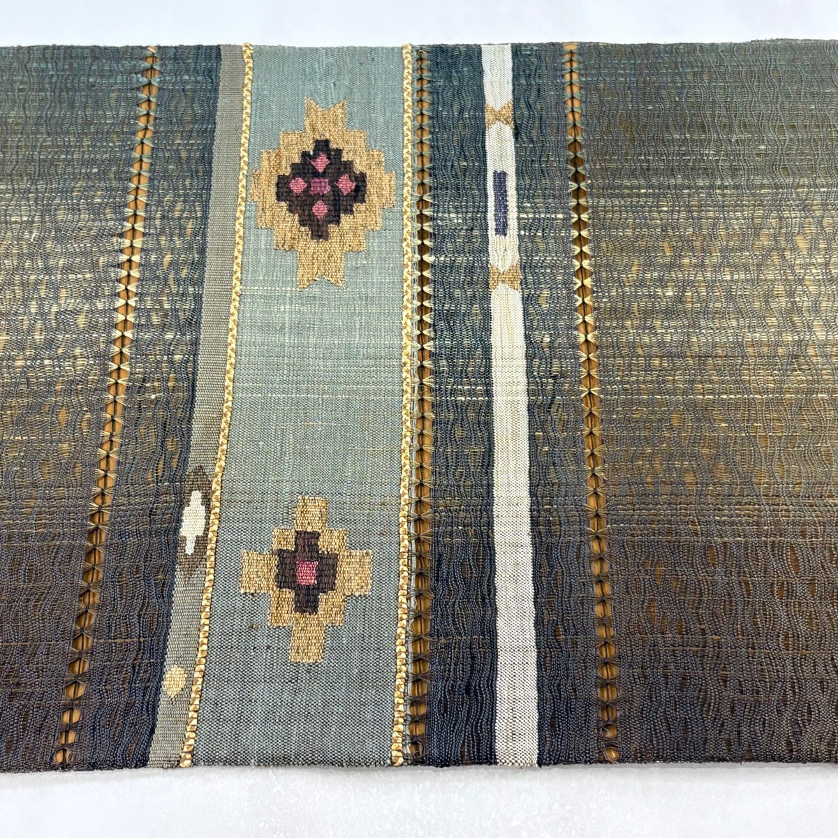 50%OFF 袋帯 名品 櫛織 幾何学 茶緑色 全通 正絹 K50