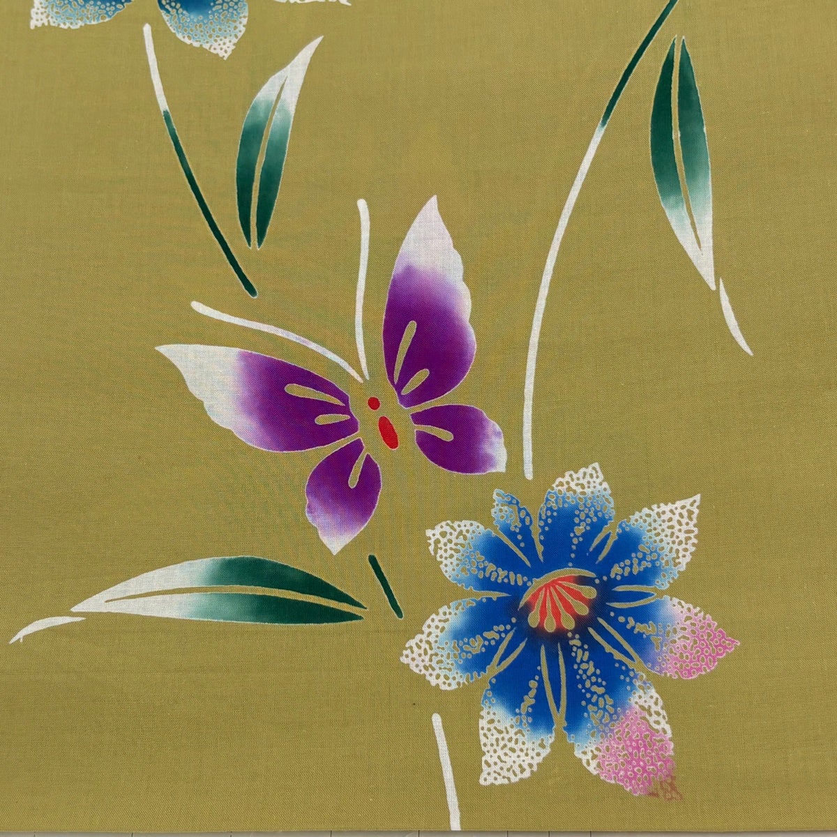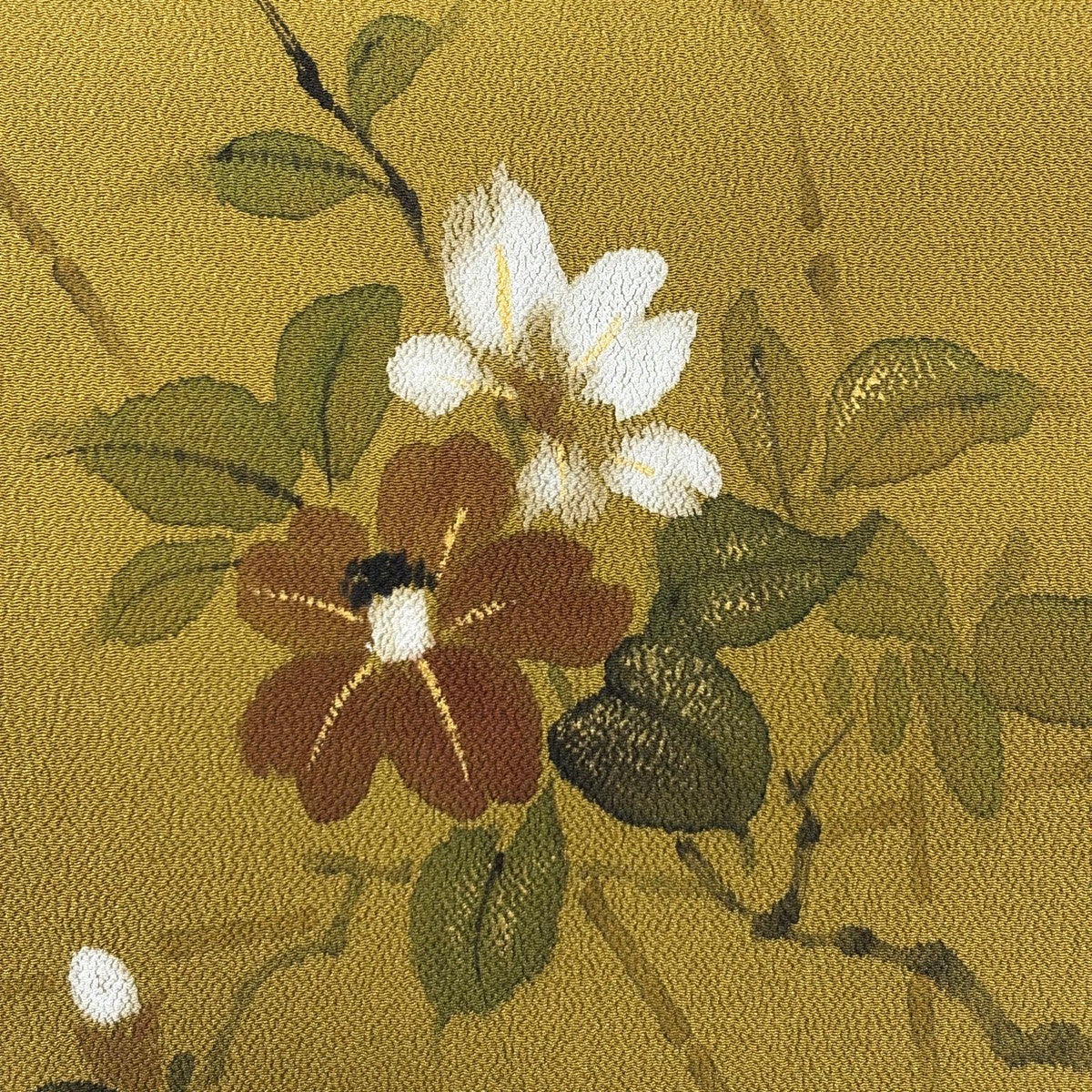 【美品】 袋帯 秀品 辻が花柄 金糸 箔 茶緑色 六通 正絹