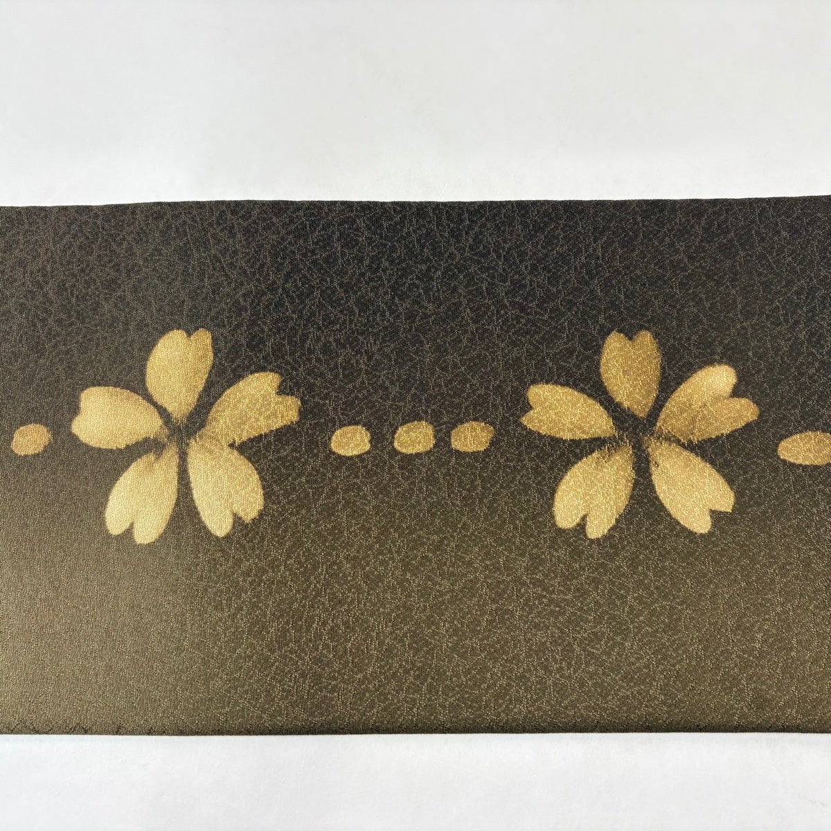 【美品】 袋帯 秀品 鈴乃屋 梅 箔散らし 箔 茶緑色 六通 正絹