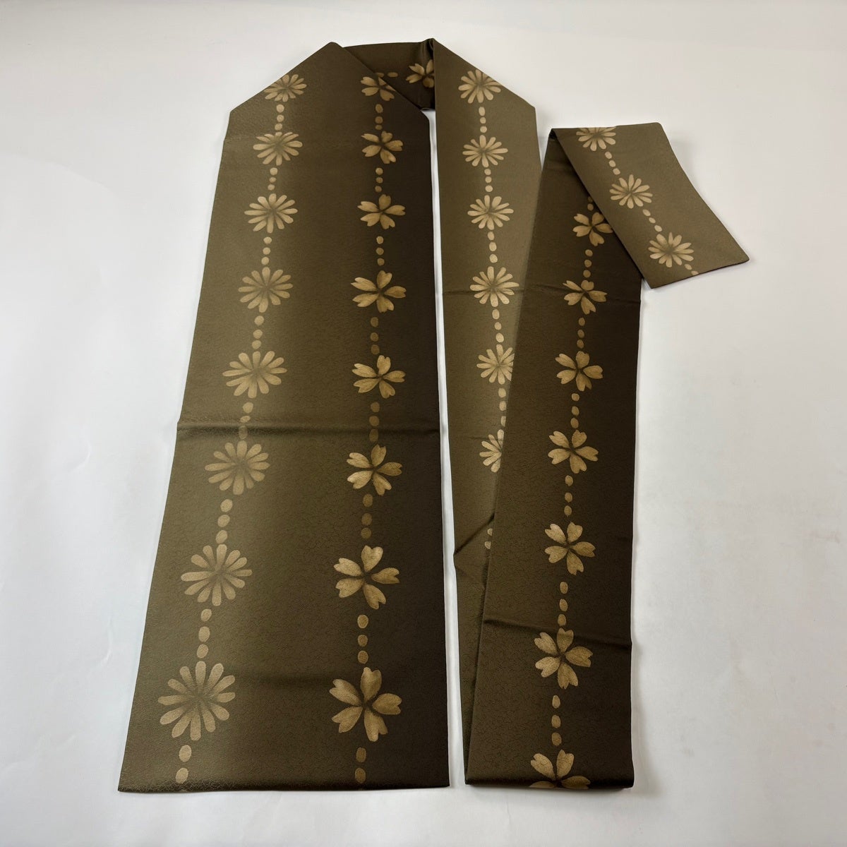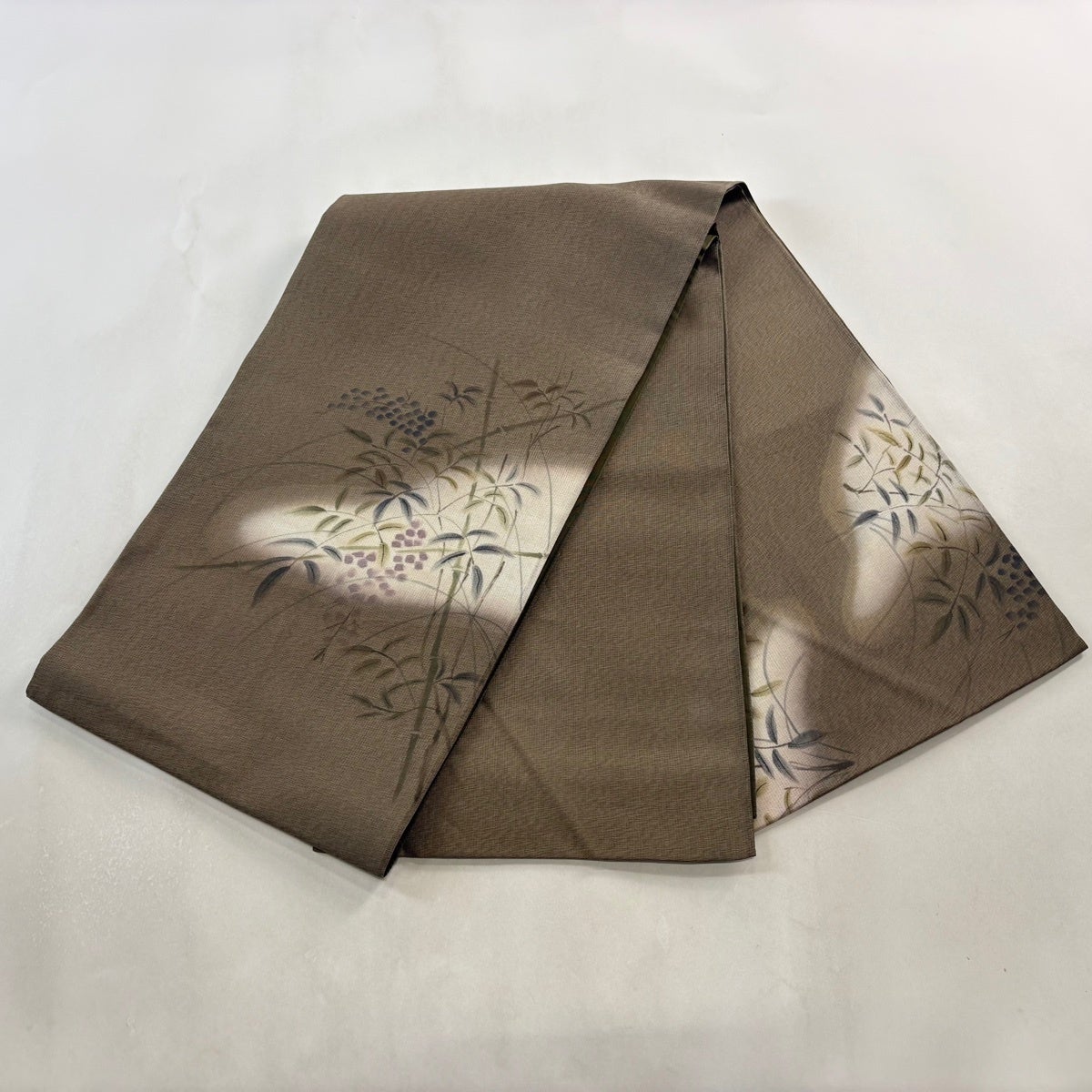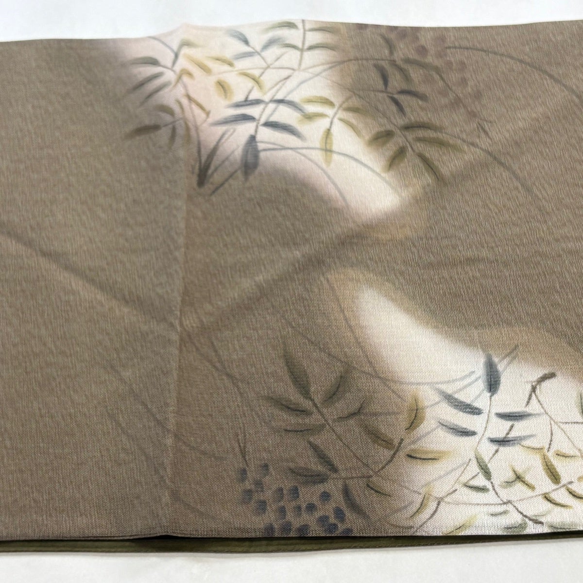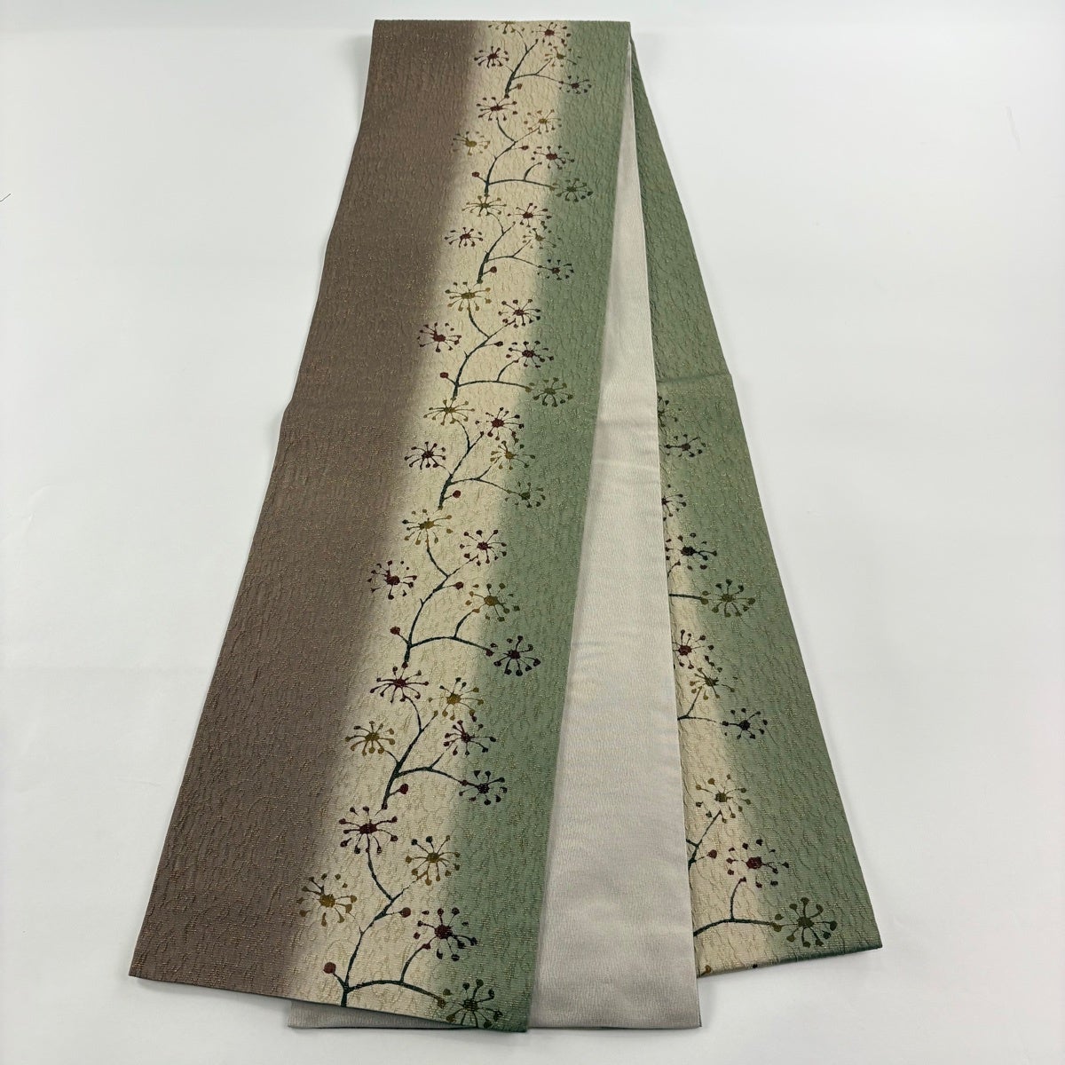 【美品】 名古屋帯 秀品 落款あり 桜 花 ぼかし 茶緑色 正絹