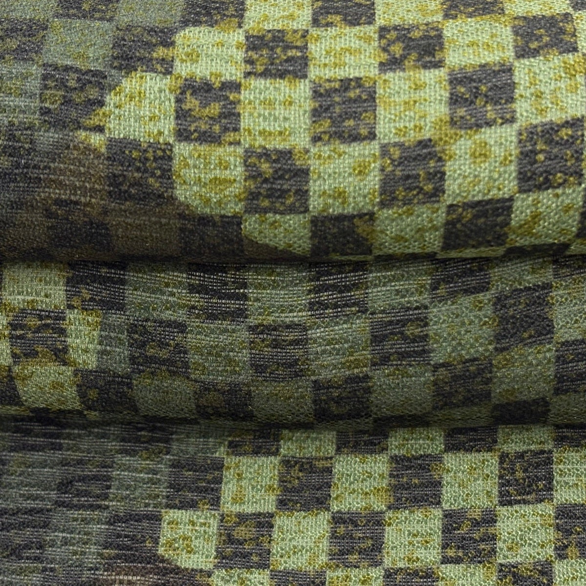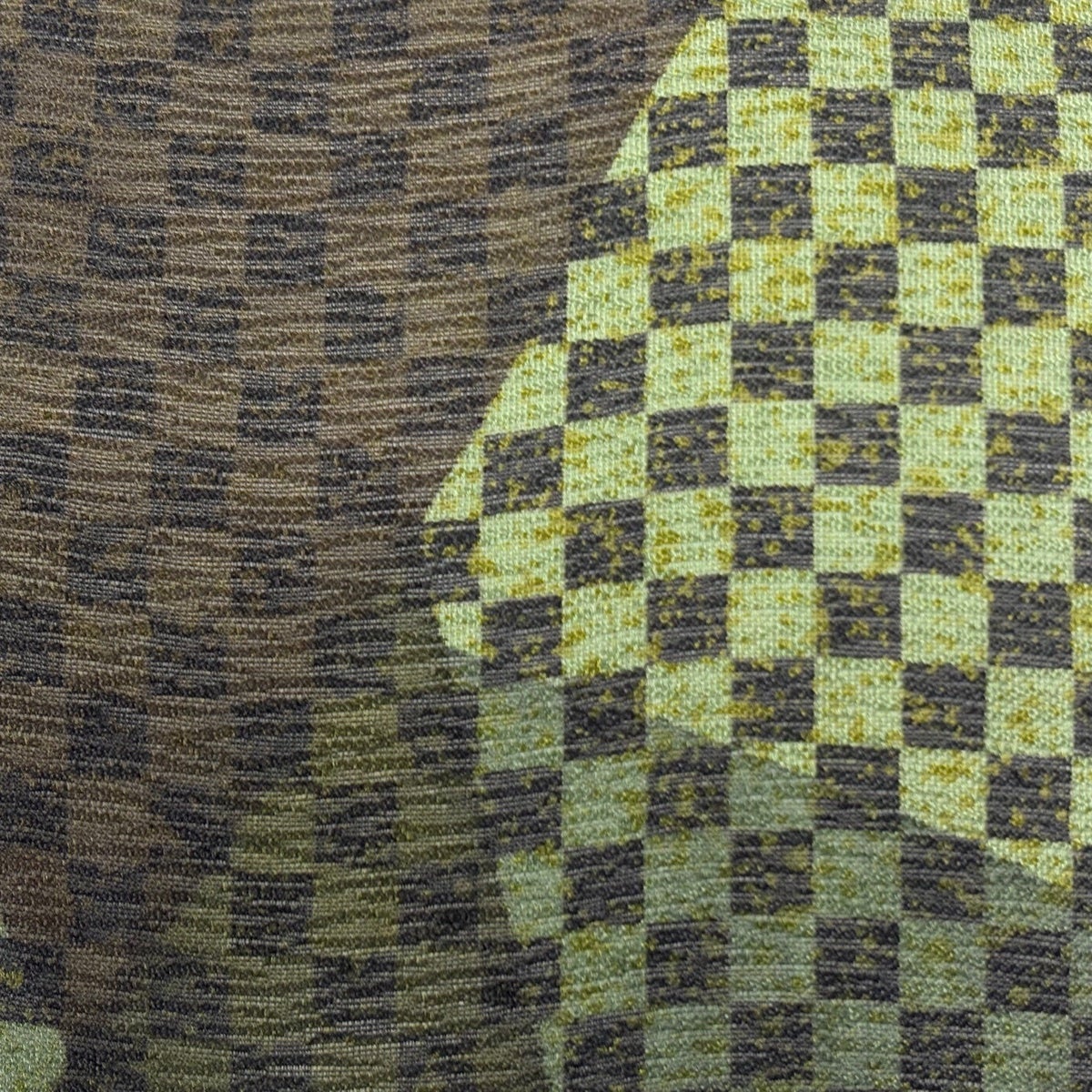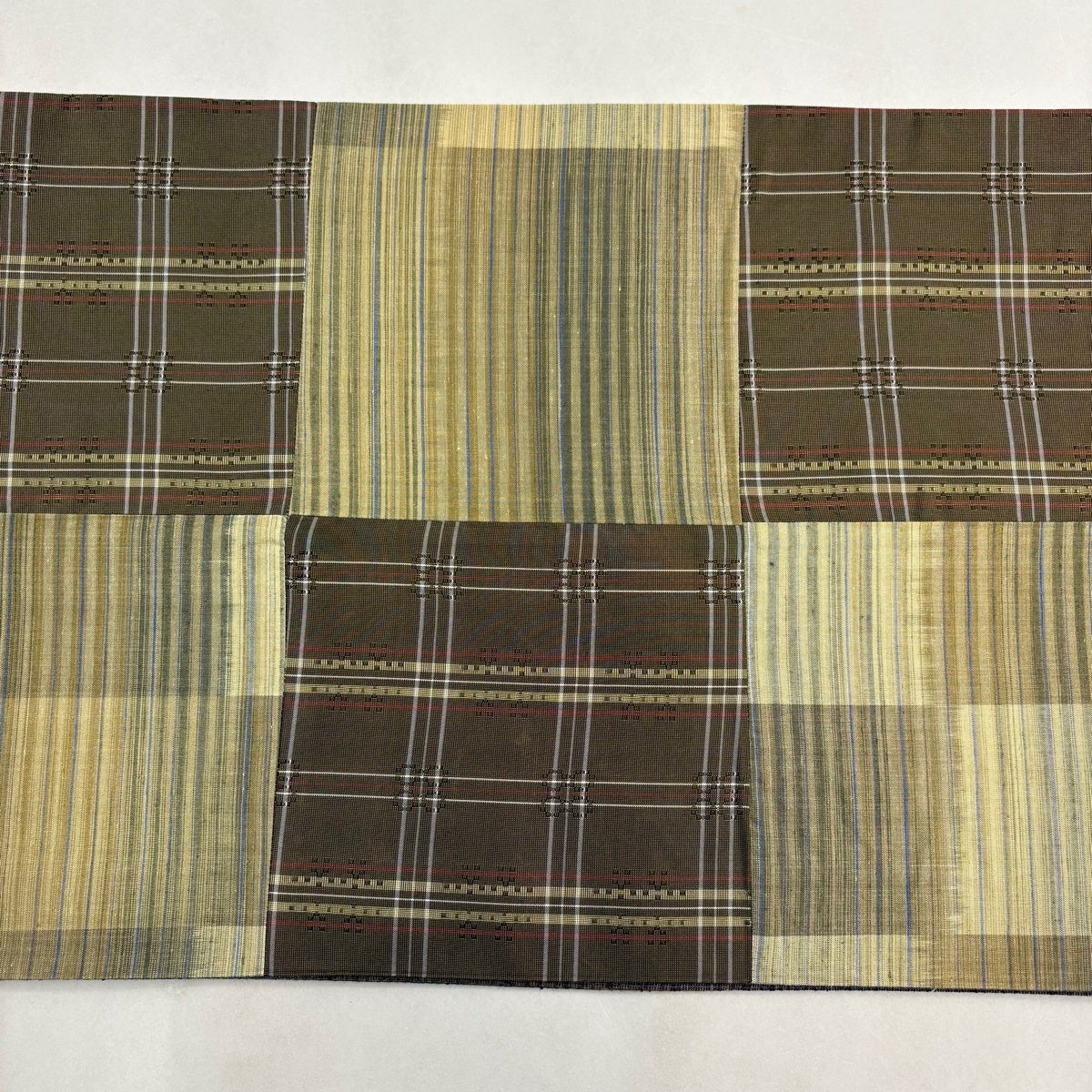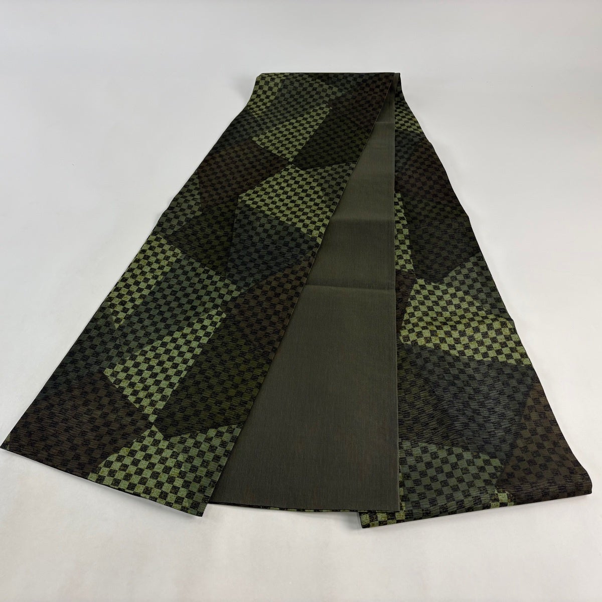 【美品】 袋帯 秀品 やまと 市松 幾何学模様 茶緑色 全通 正絹