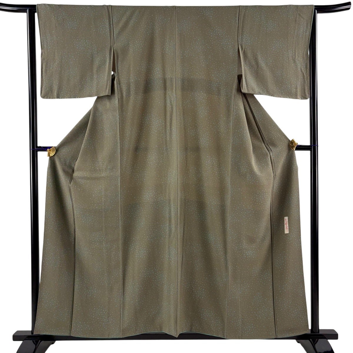 小紋 身丈157cm 裄丈63.5cm S 袷 小花 茶緑色 正絹 名品