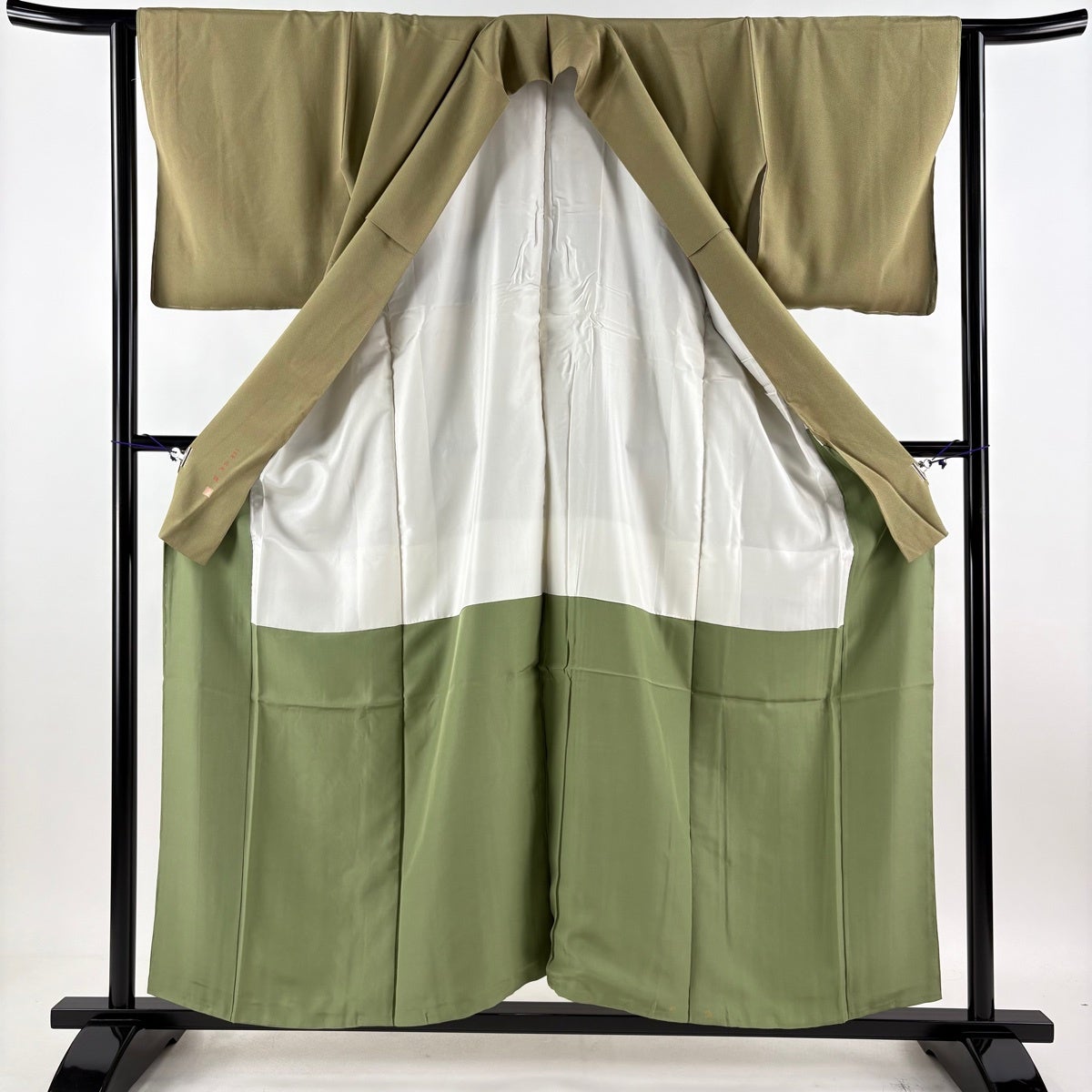 小紋 身丈167cm 裄丈66cm M 袷 うさぎ 露芝 ぼかし 茶緑色 正絹 秀品