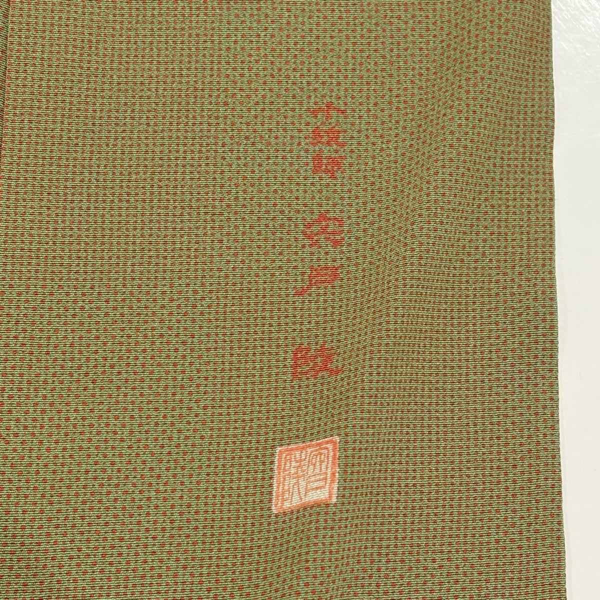 江戸小紋 身丈156cm 裄丈62cm S 袷 落款あり 幾何学 茶緑色 正絹 秀品
