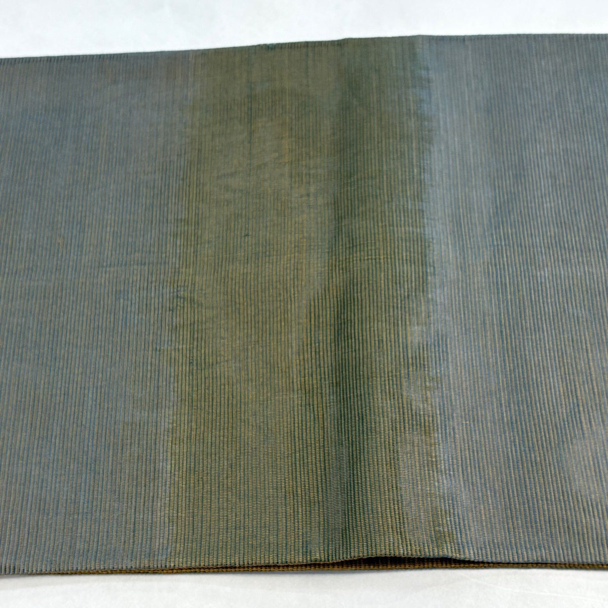 50%OFF 袋帯 秀品 段縞模様 幾何学模様 箔 茶緑色 お太鼓柄 正絹 K50