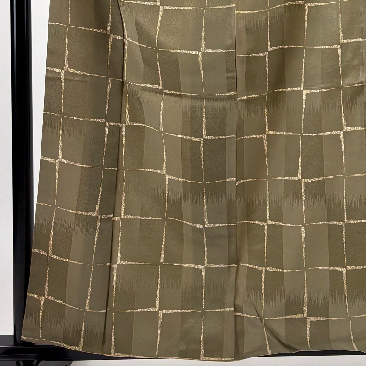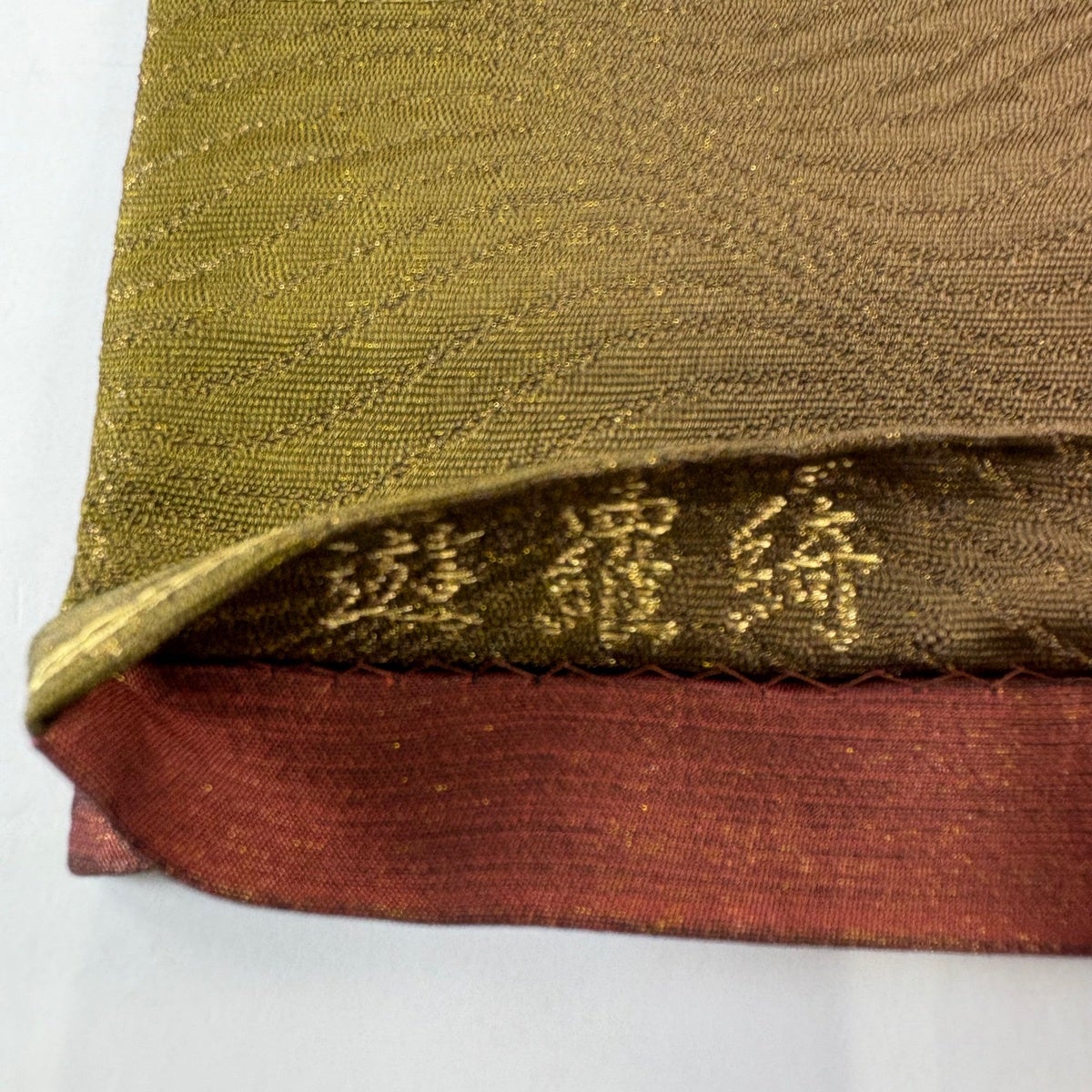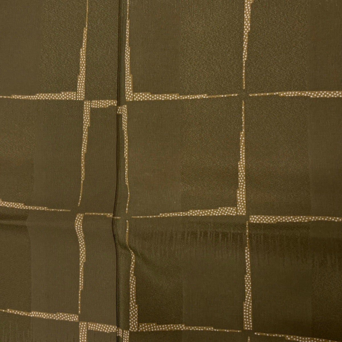 70%OFF 【美品】 袋帯 名品 幾何学 金糸 箔 茶緑色 六通 正絹 K70