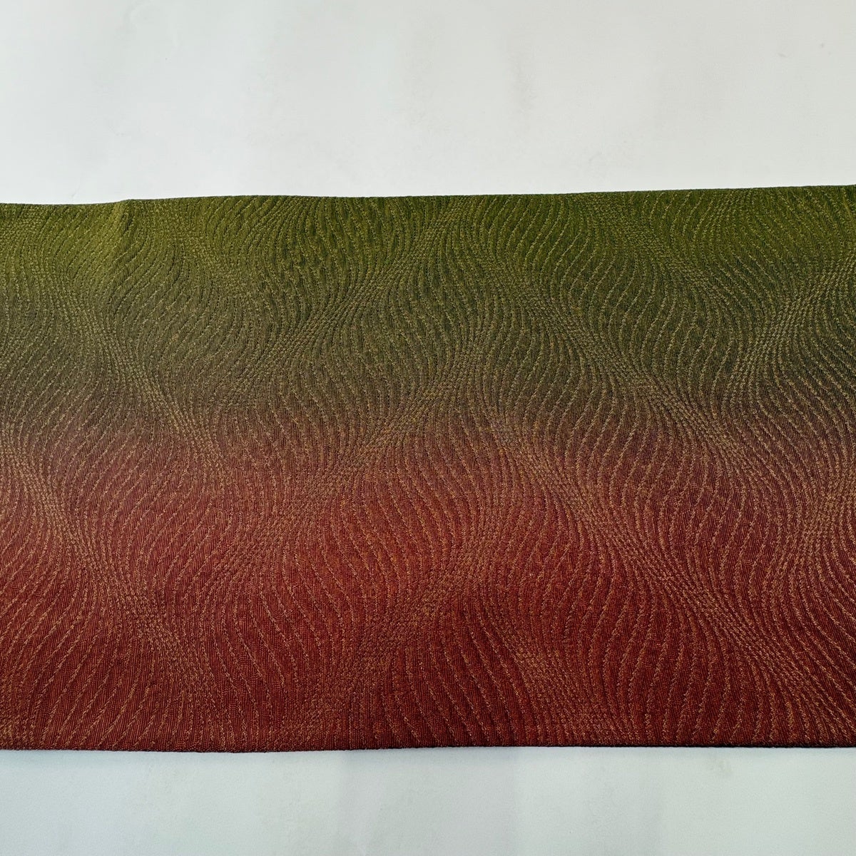 50%OFF 【美品】 名古屋帯 秀品 八寸名古屋帯 幾何学模様 茶緑色 正絹 K50