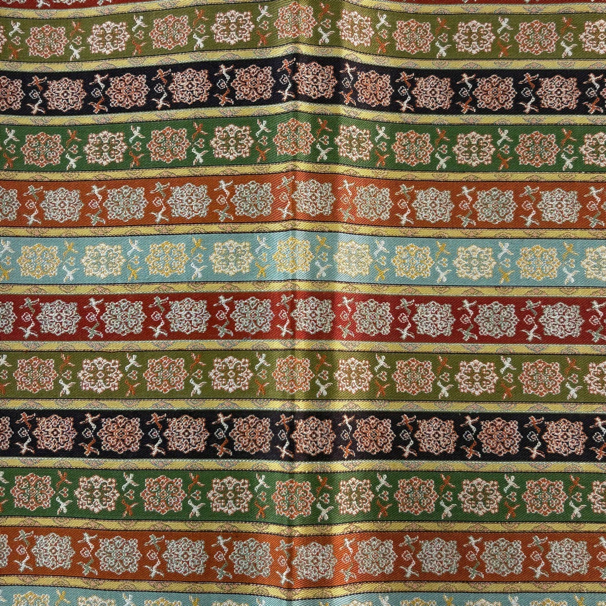 30%OFF 【美品】 袋帯 秀品 扇 花鳥 金糸 箔 茶緑色 六通 正絹 K30
