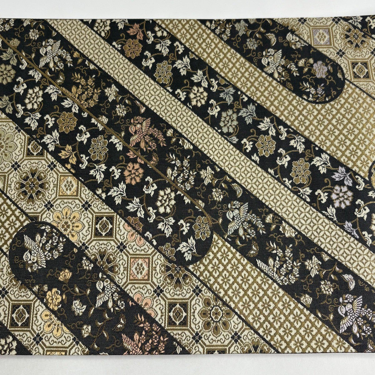 30%OFF 【美品】 袋帯 秀品 向かい鳥 変わり市松 ぼかし 茶緑色 全通 正絹 K30