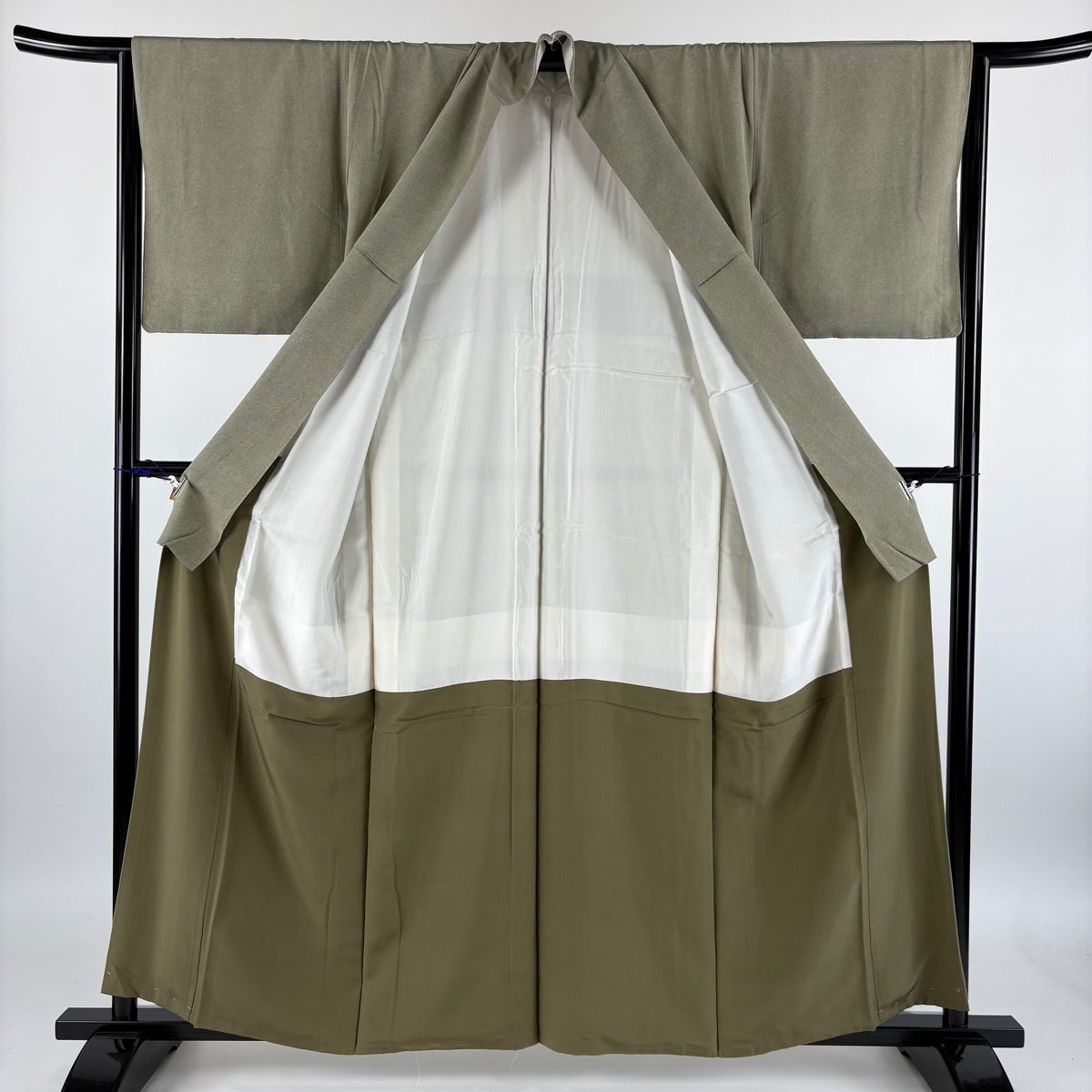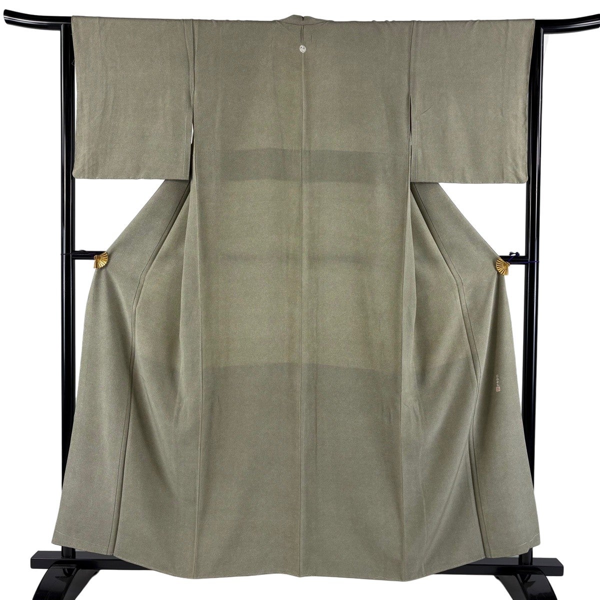 50%OFF 江戸小紋 身丈157cm 裄丈63cm S 袷 万筋 茶緑色 正絹 名品 K50