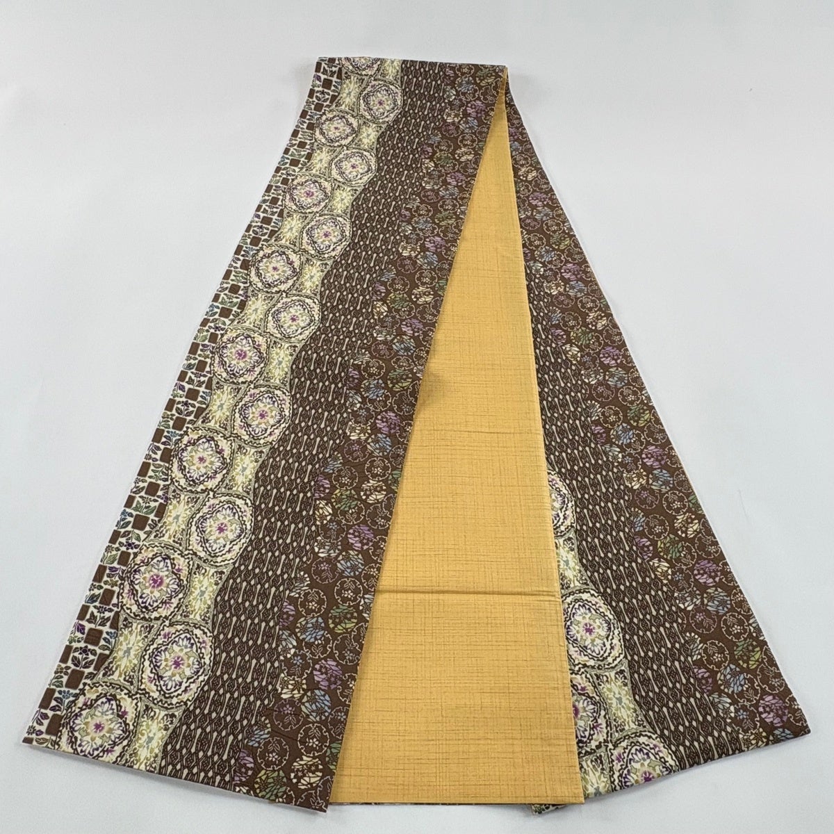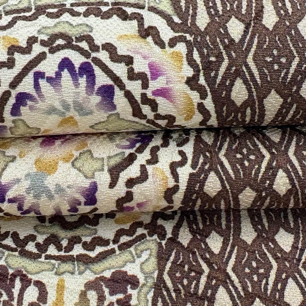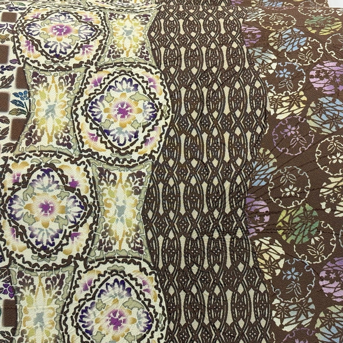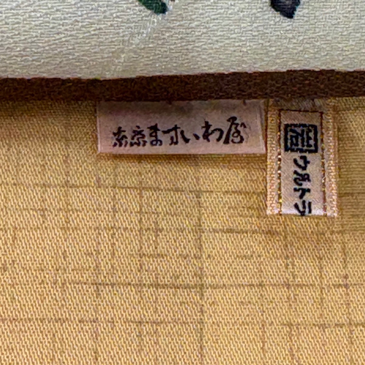 【美品】 袋帯 逸品 びんがたそめ ますいわ屋 雪輪 華文 茶緑色 全通 正絹