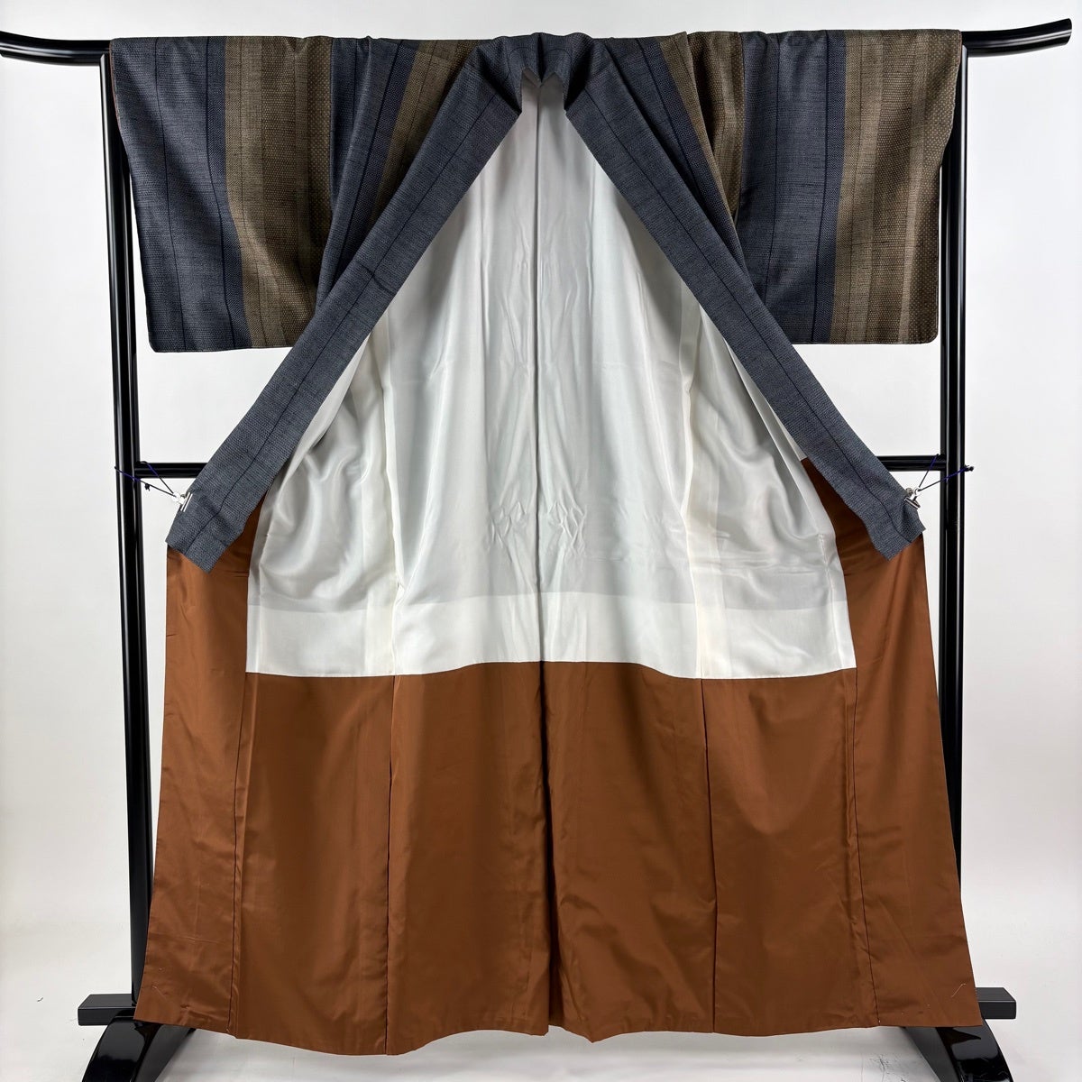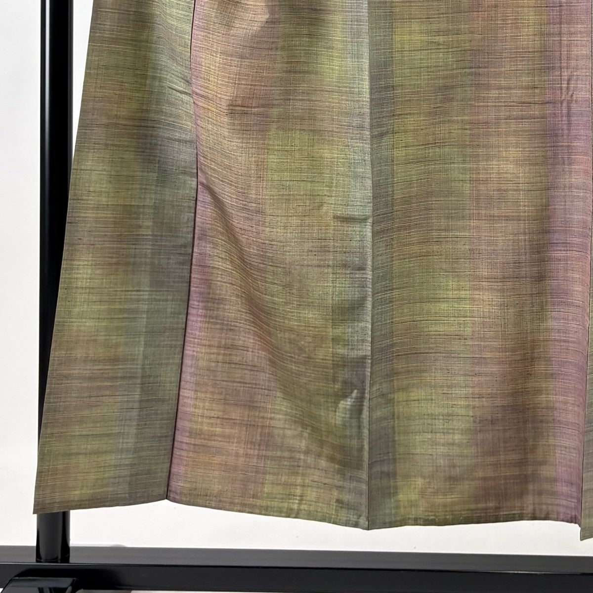 付下げ 身丈158cm 裄丈64cm M 袷 地紋 ぼかし 茶緑色 正絹 秀品 一つ紋