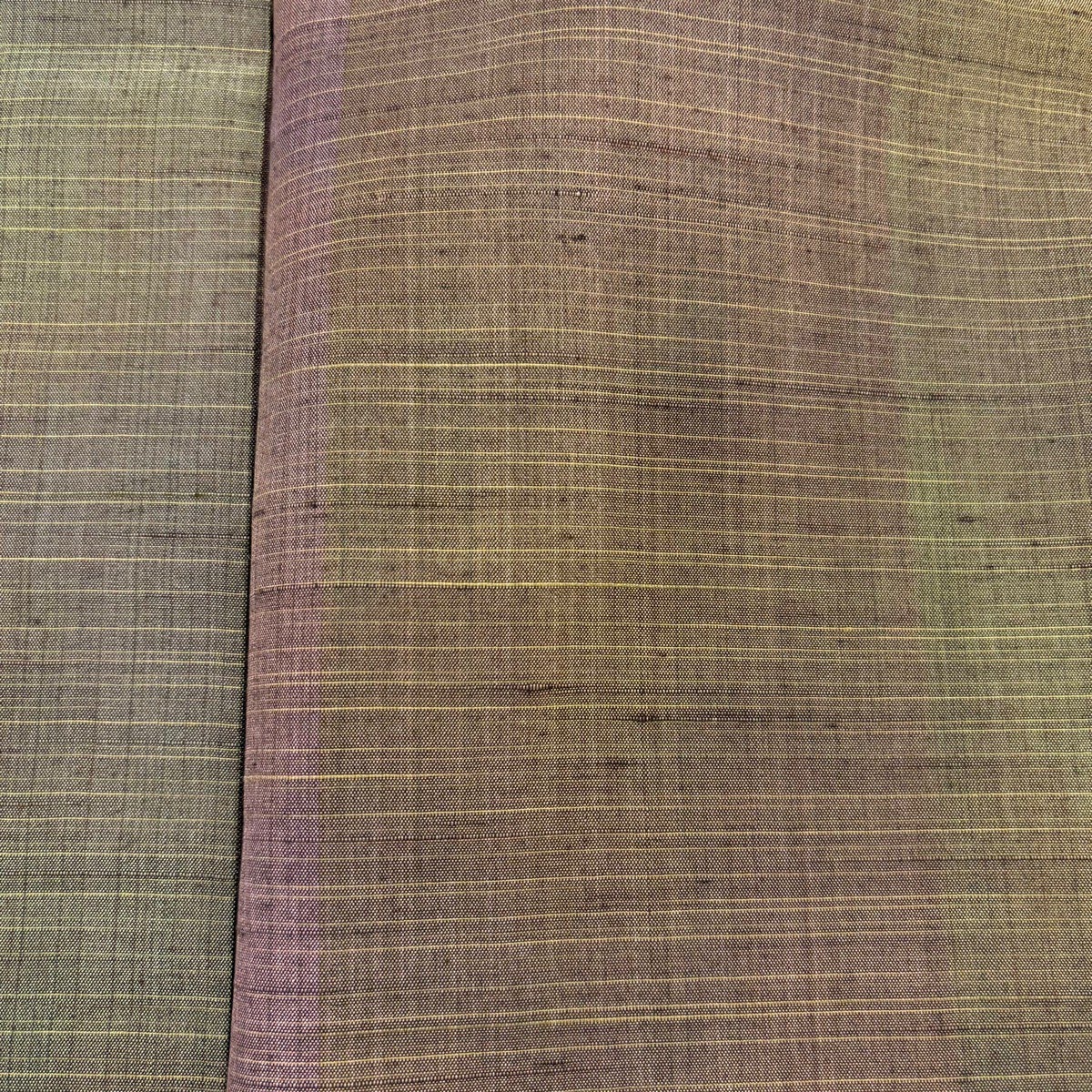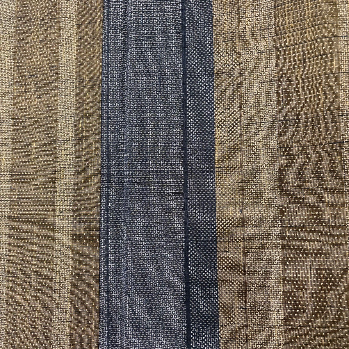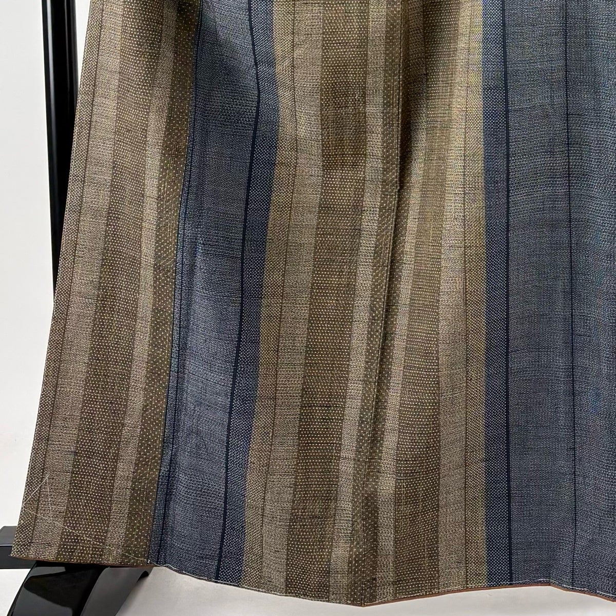 【美品】 袋帯 逸品 渡文 落款あり 段縞 幾何学模様 金糸 箔 茶緑色 六通 正絹